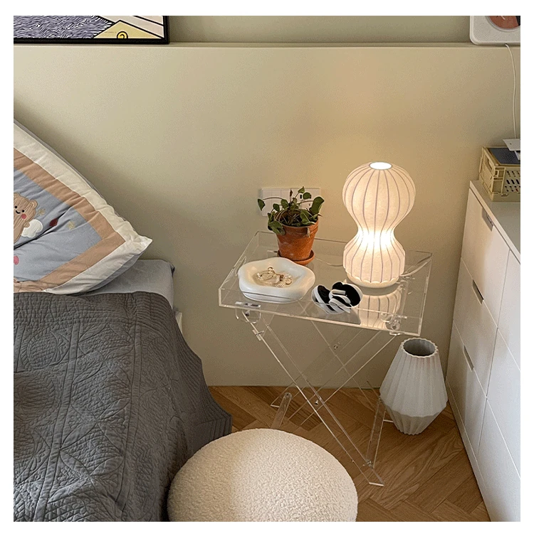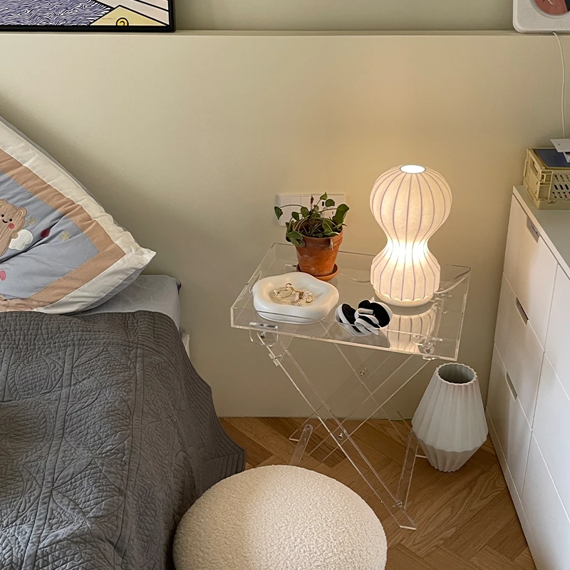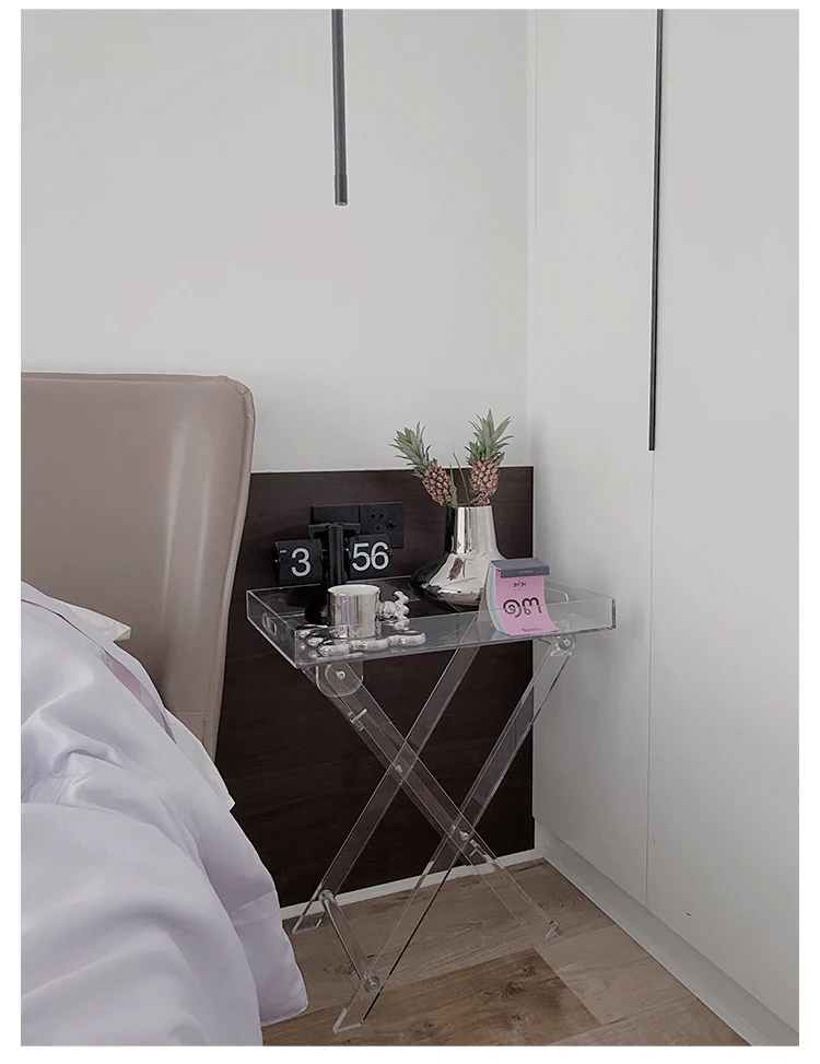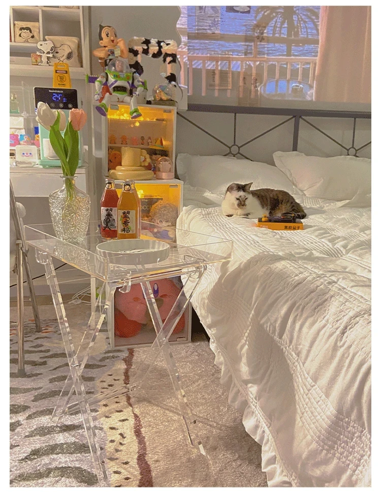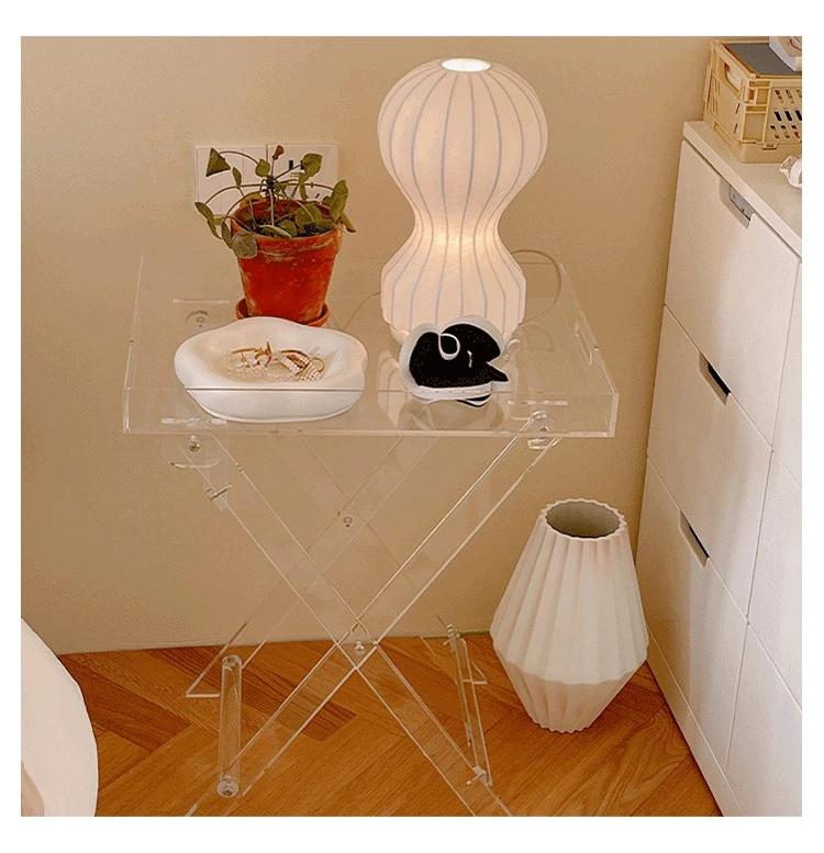 モダンな透明アクリル折りたたみテーブル - シンプルなベッドサイド収納、インスタ風おしゃれアイテム!お部屋をスタイリッシュに演出する必見の一品!