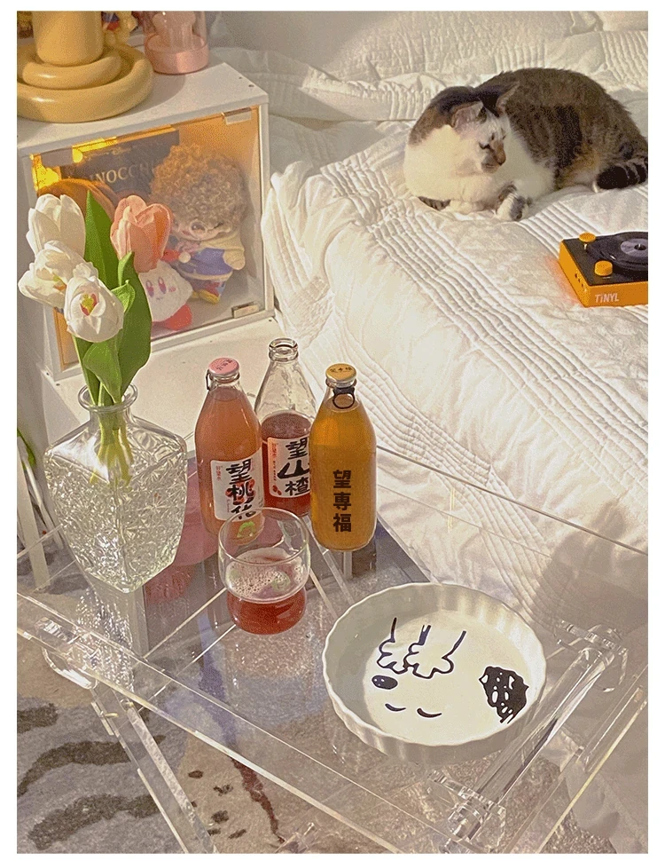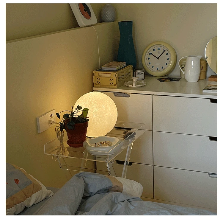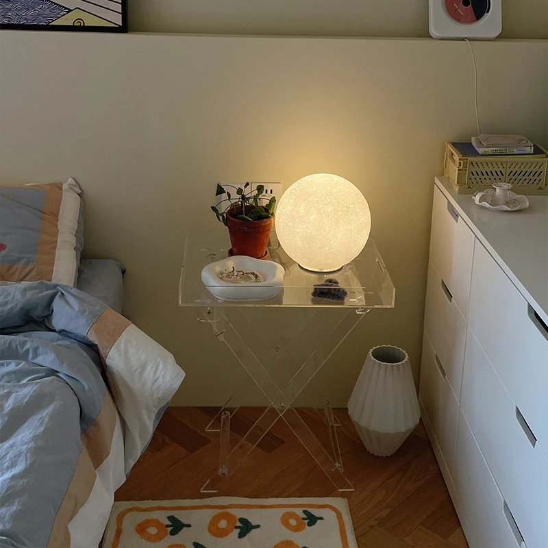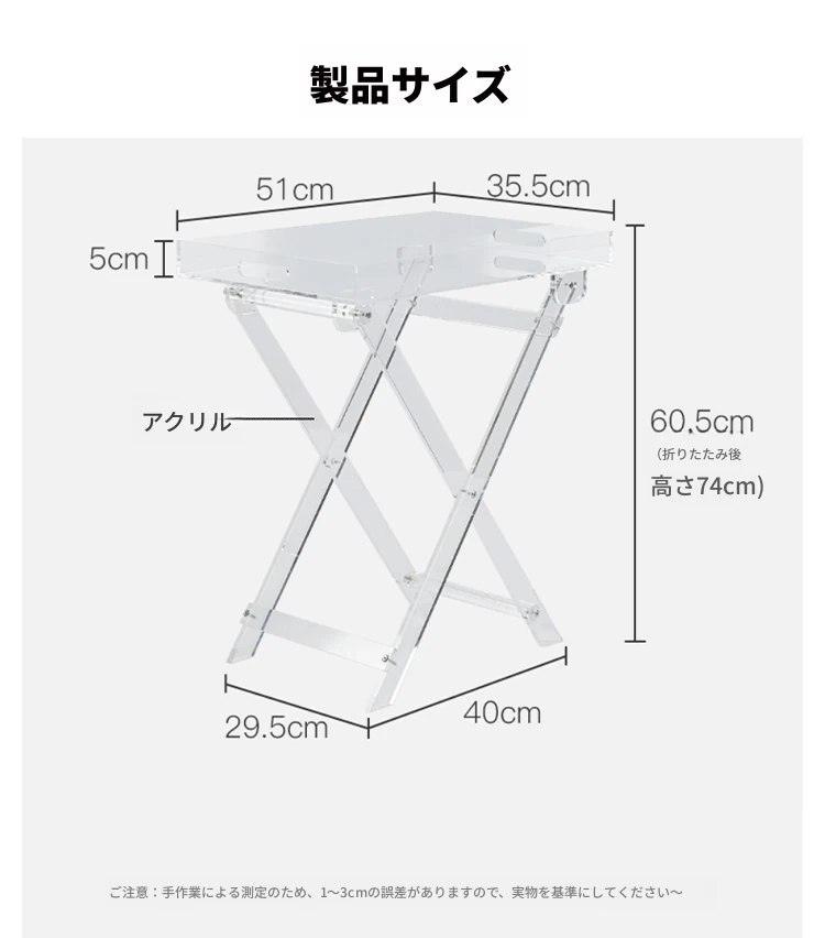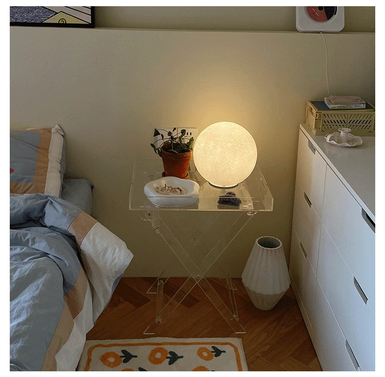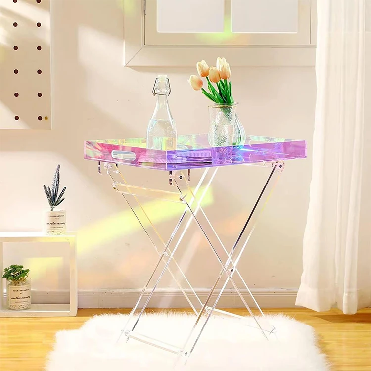 モダンな透明アクリル折りたたみテーブル - シンプルなベッドサイド収納、インスタ風おしゃれアイテム!お部屋をスタイリッシュに演出する必見の一品!