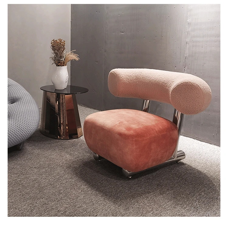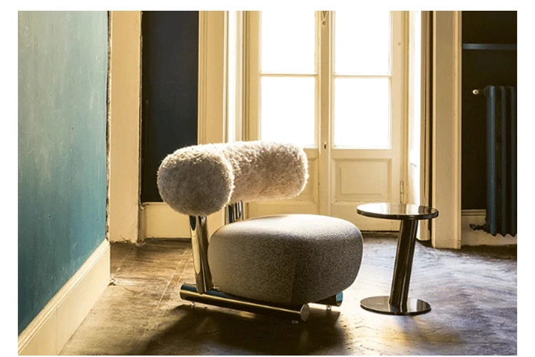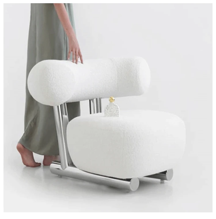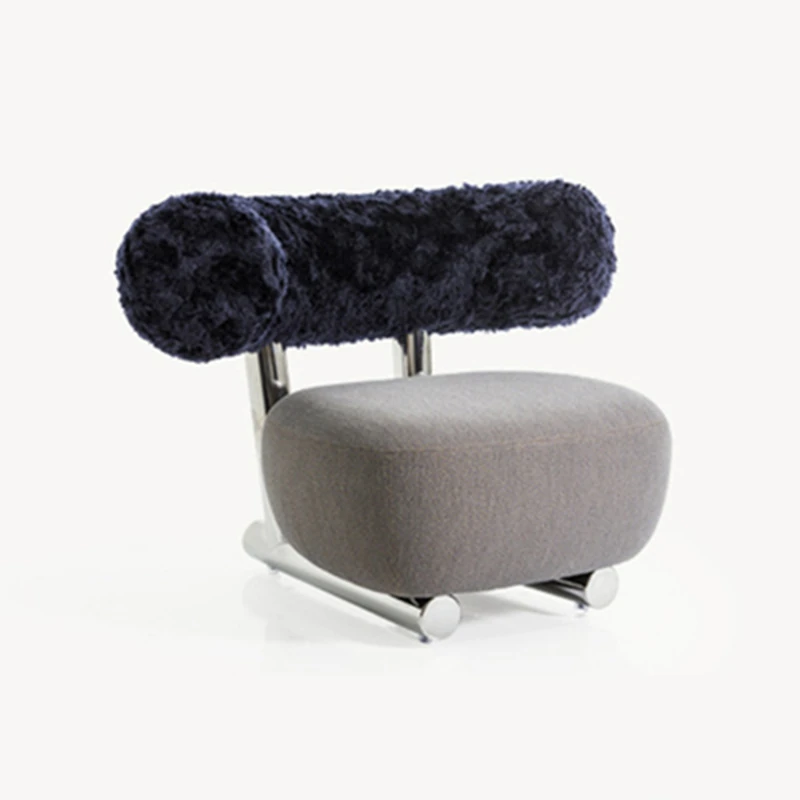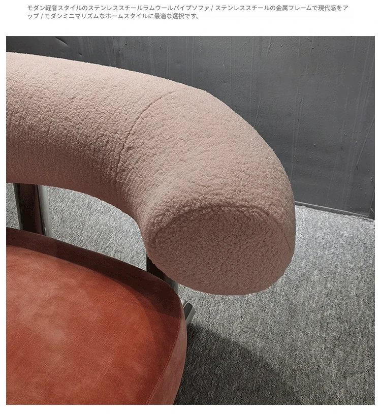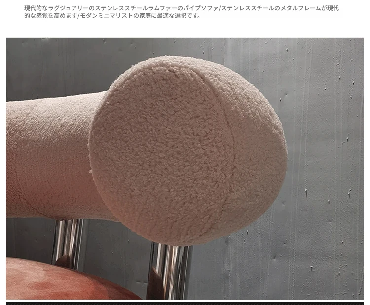 北欧風インテリア☆おしゃれなデザイナーのパイプソファ椅子|現代的でシンプルな一人掛け椅子|ふわふわのウサギ毛風素材使用|デンマーク流行のリラックスチェア