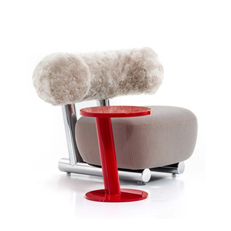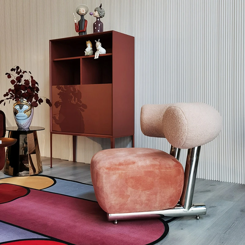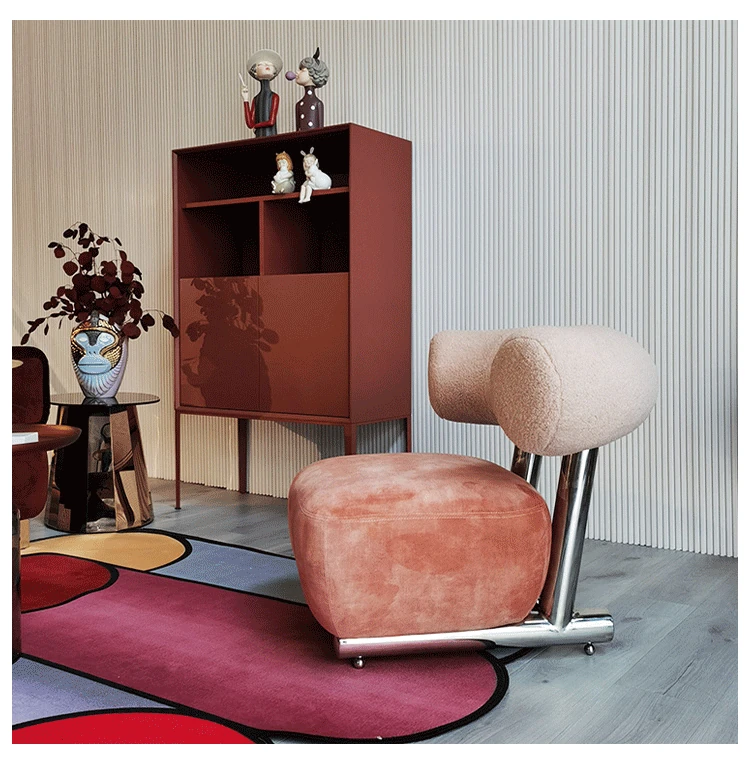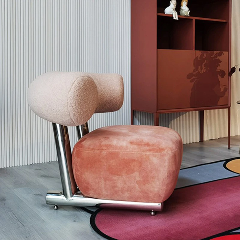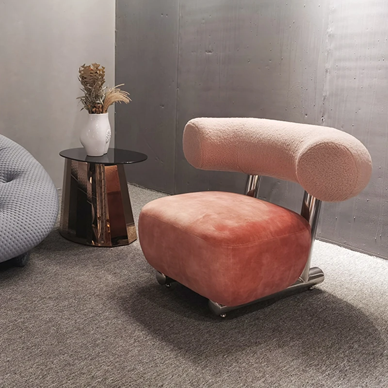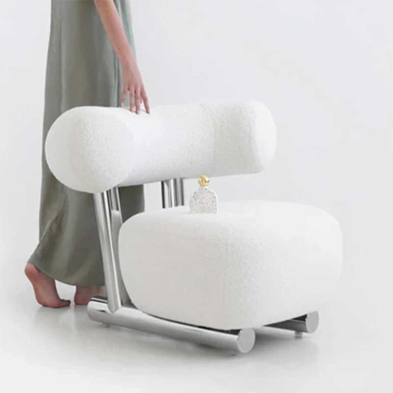 北欧風インテリア☆おしゃれなデザイナーのパイプソファ椅子|現代的でシンプルな一人掛け椅子|ふわふわのウサギ毛風素材使用|デンマーク流行のリラックスチェア