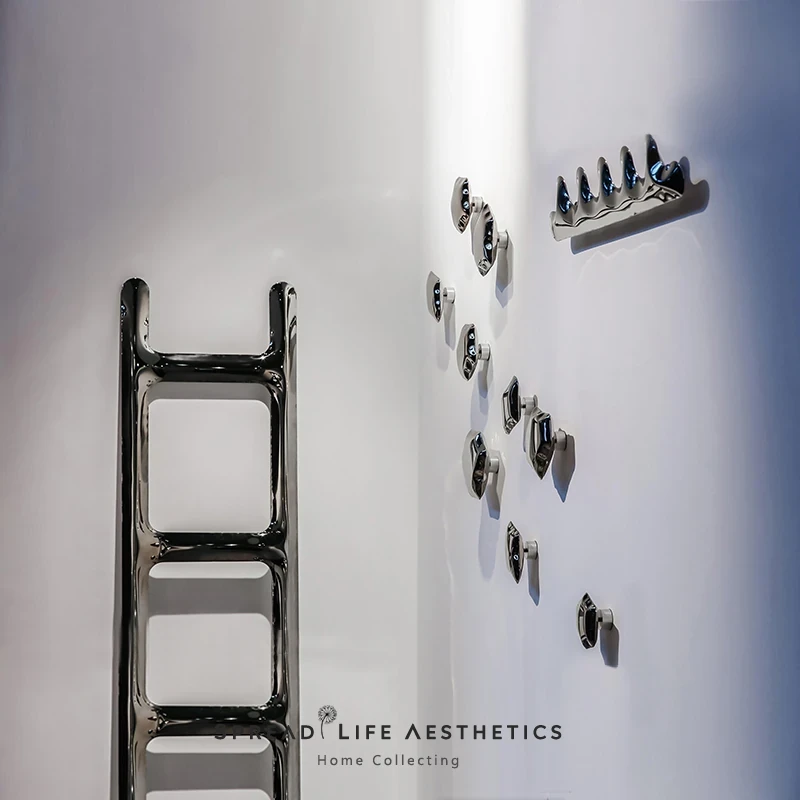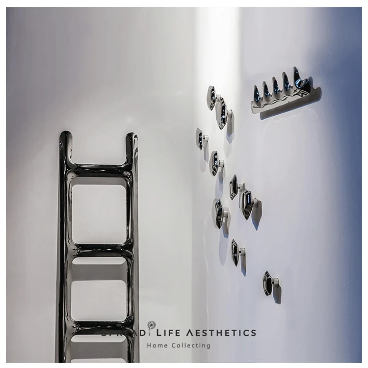 インスタ映えする北欧モダンデザインのアートクリエイティブポリッシュステンレス製ハンガーフック - 壁面装飾に最適!玄関やバスルームをスタイリッシュに演出!