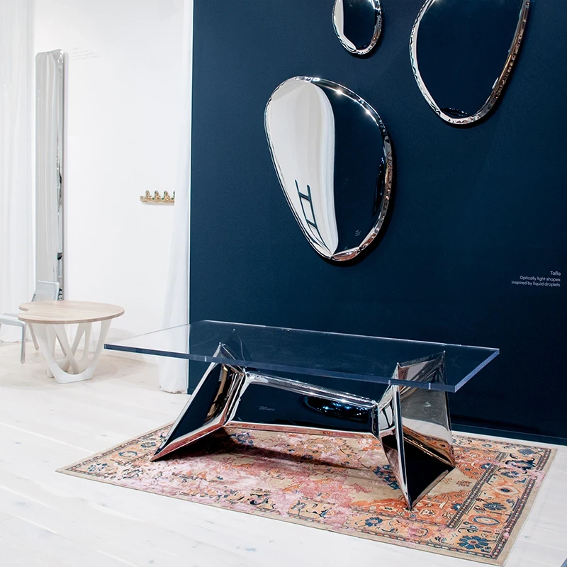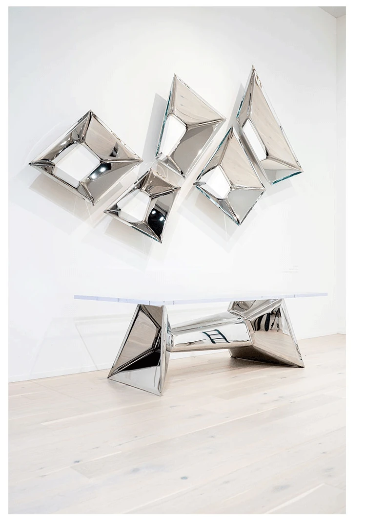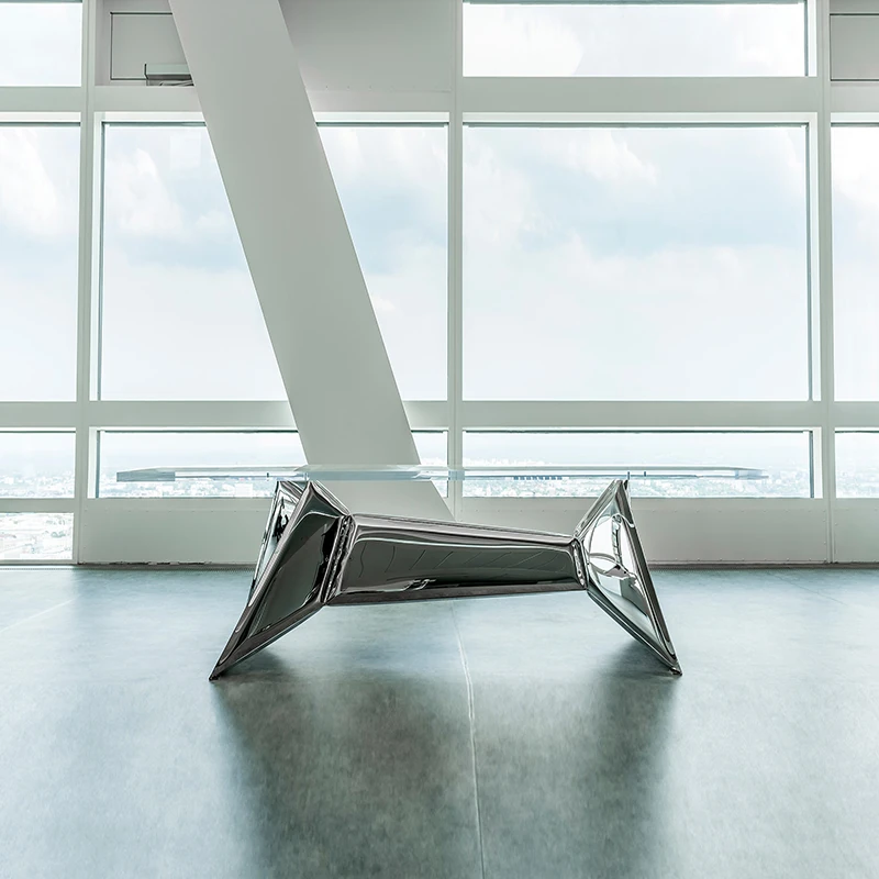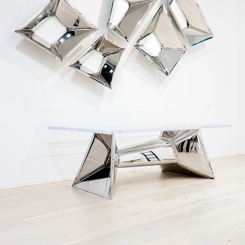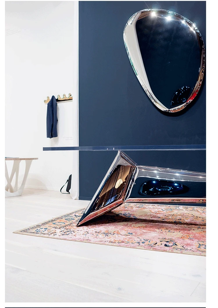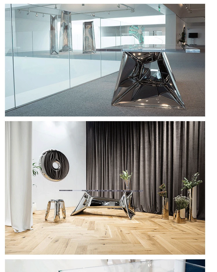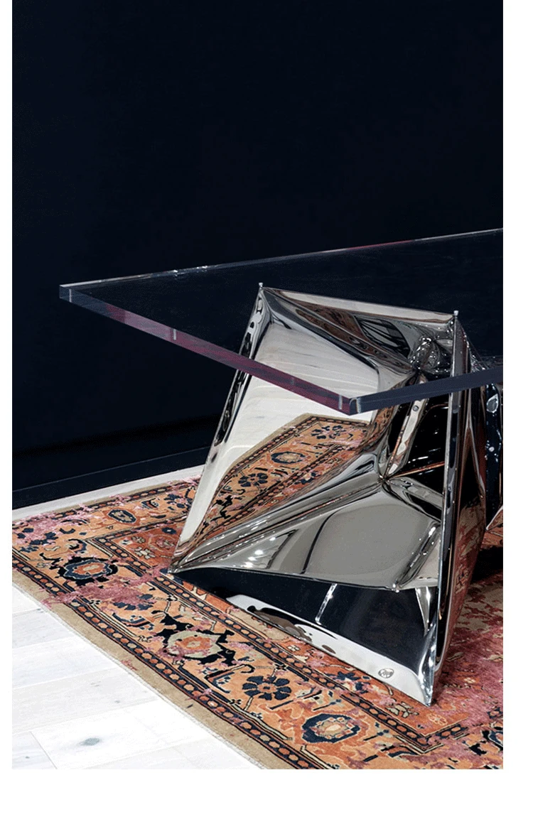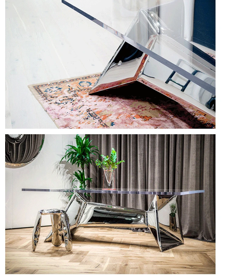 インス北欧モダン軽奢デザイン!クリエイティブな充気ポリッシュステンレスベースのダイニングテーブル&コーヒーテーブル。ラグジュアリーなリビングや別荘にぴったり、スタイリッシュな空間を演出します!