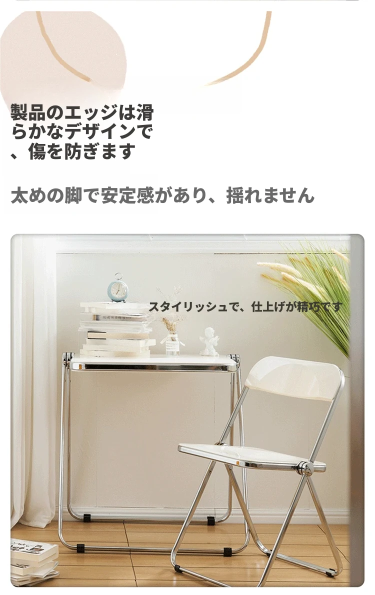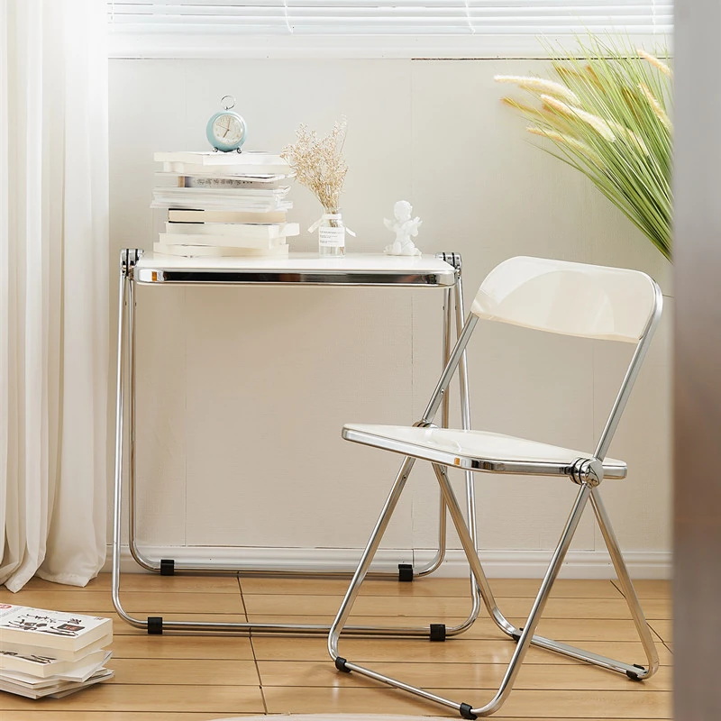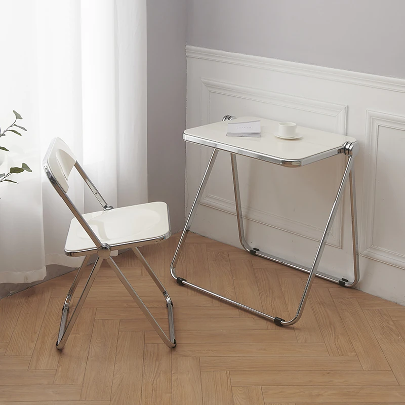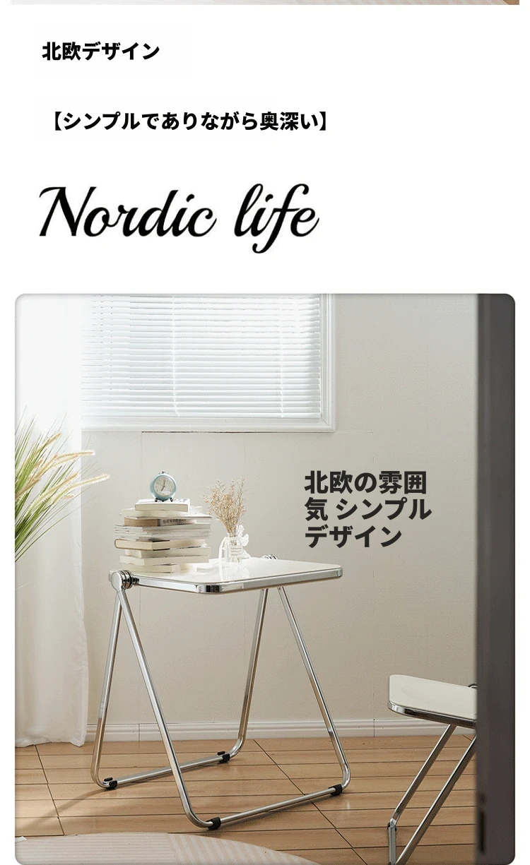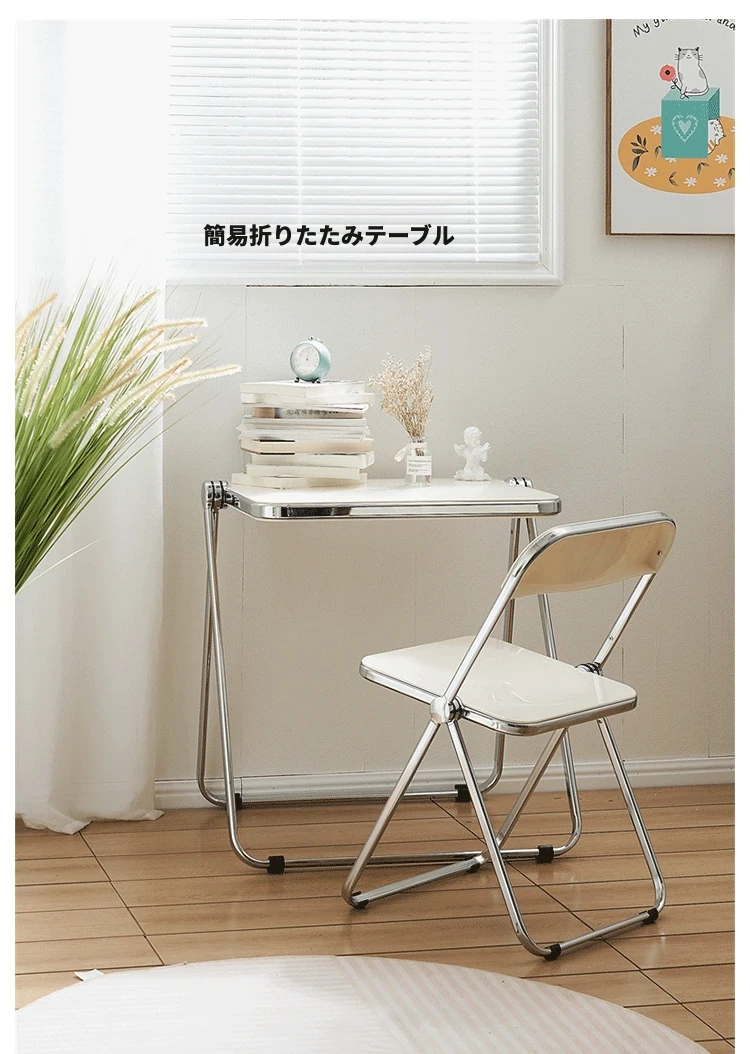 北欧スタイルの折りたたみテーブル - シンプルでおしゃれなアクリル透明デザインのテーブル&チェアセット!持ち運びに便利で、モダンなINS風の学習デスクとして最適です。快適な空間を演出し、あなたのインテリアをグレードアップ!