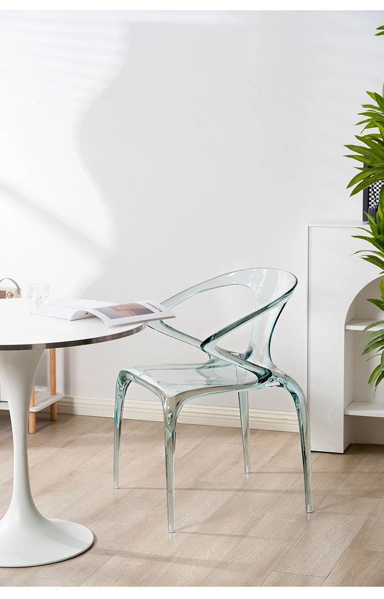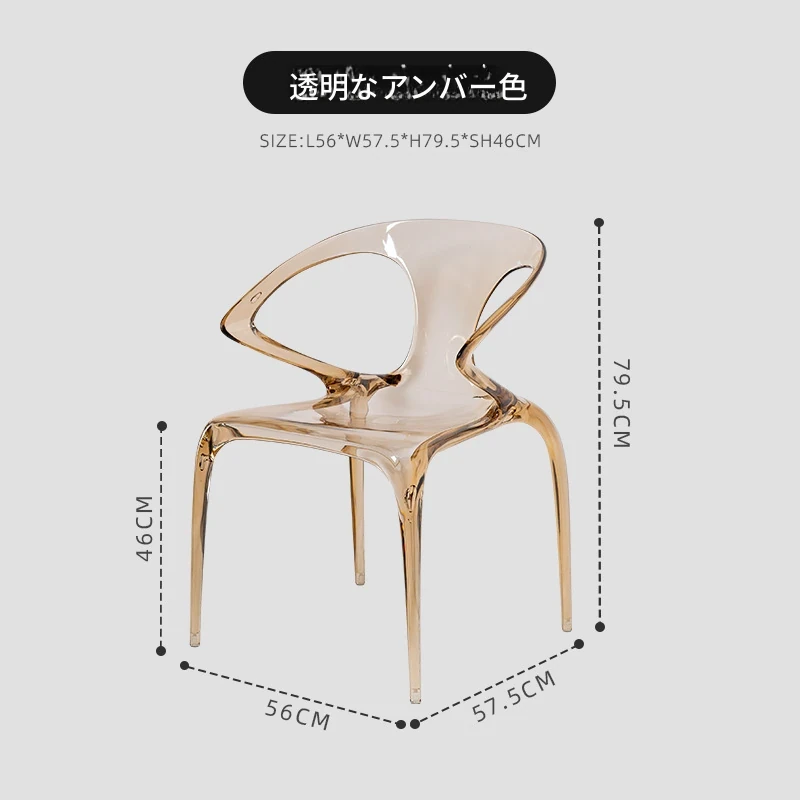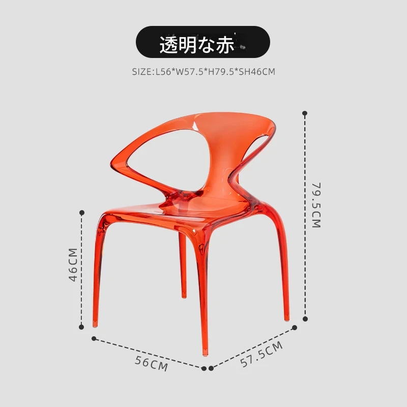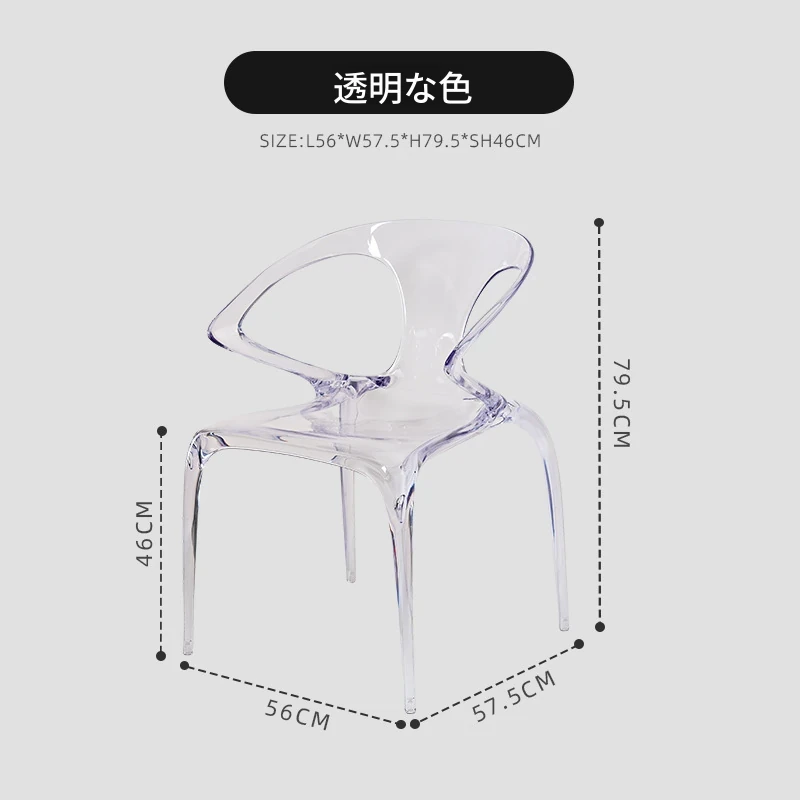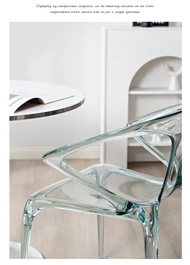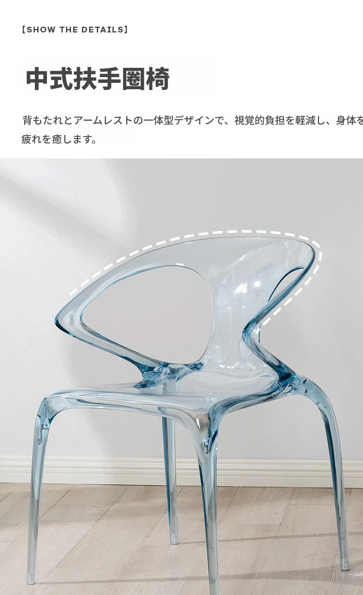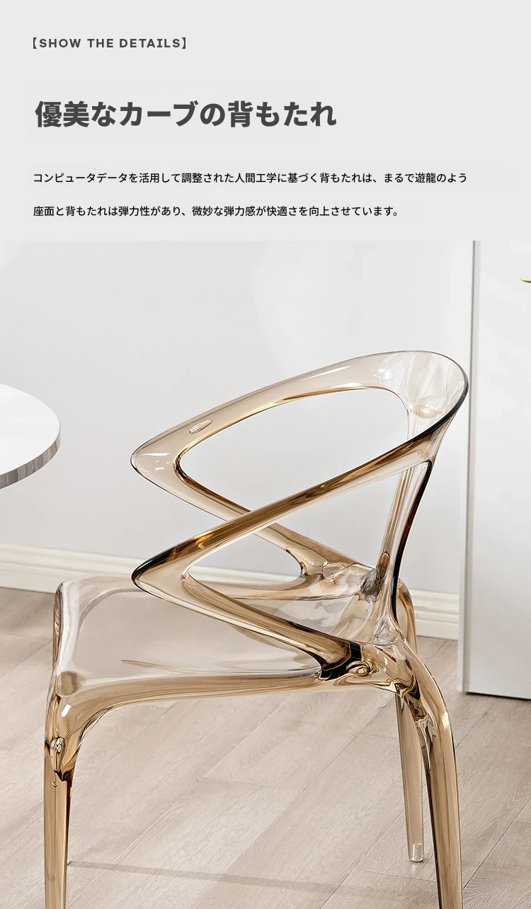 北欧風の透明アクリルダイニングチェア | おしゃれなデザインの家庭用椅子 | アイランドカウンターチェア | ラグジュアリーなリラックスと快適さを実現する背もたれ付き!
