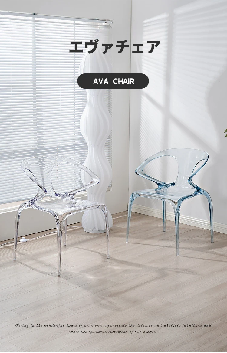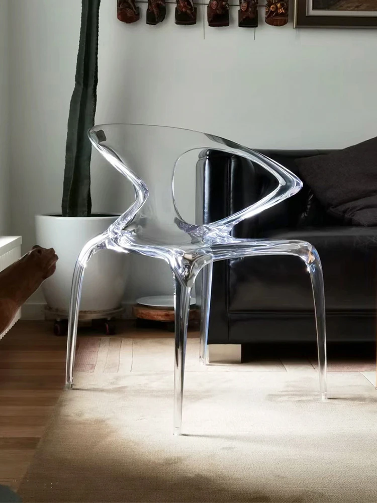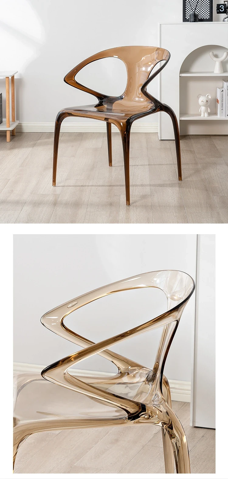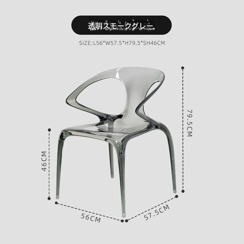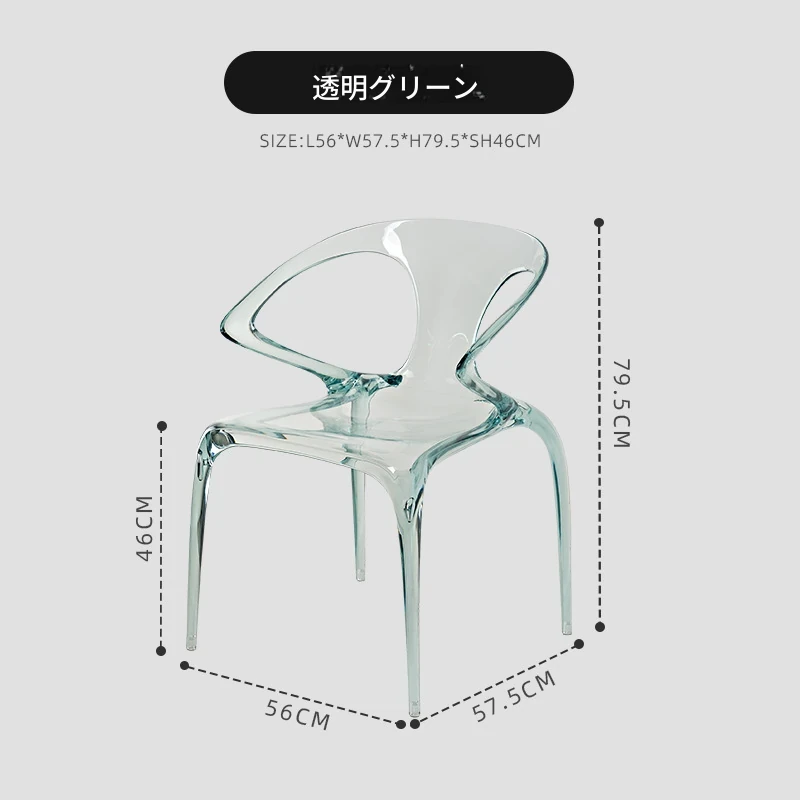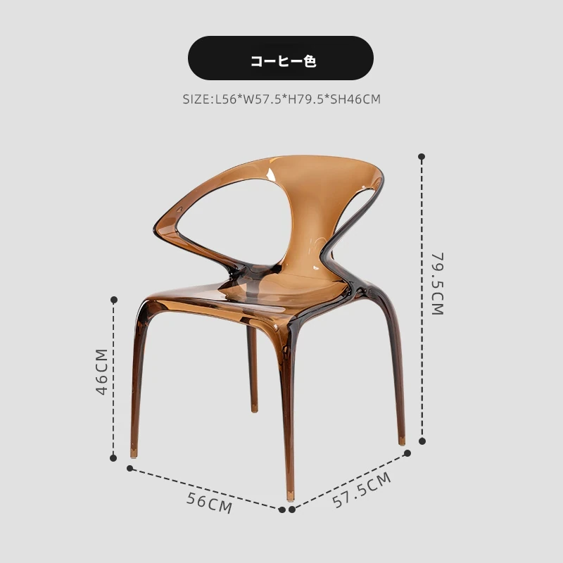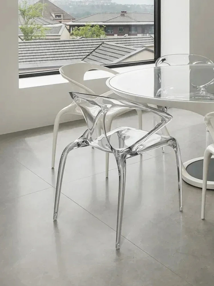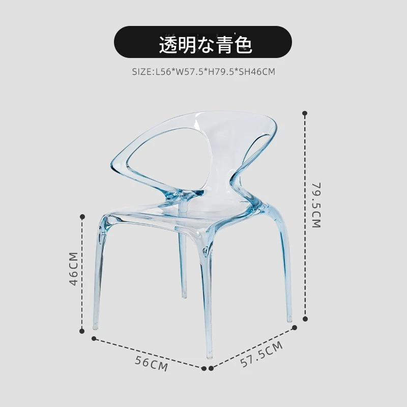 北欧風の透明アクリルダイニングチェア | おしゃれなデザインの家庭用椅子 | アイランドカウンターチェア | ラグジュアリーなリラックスと快適さを実現する背もたれ付き!