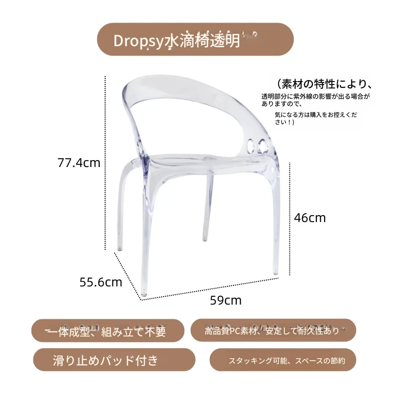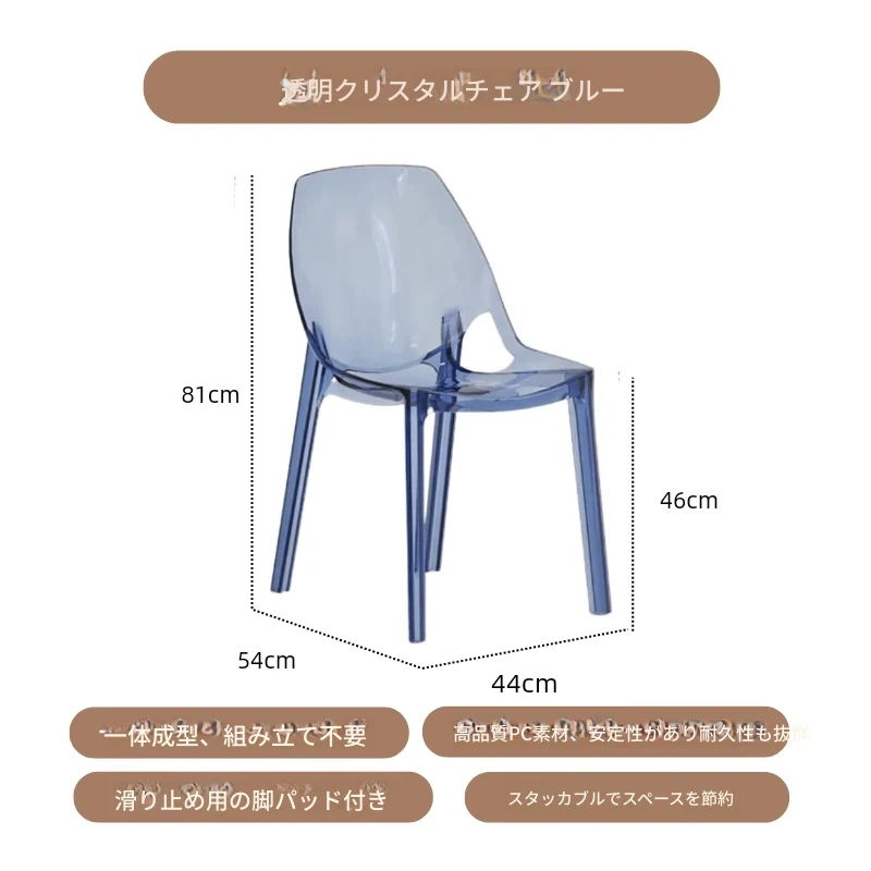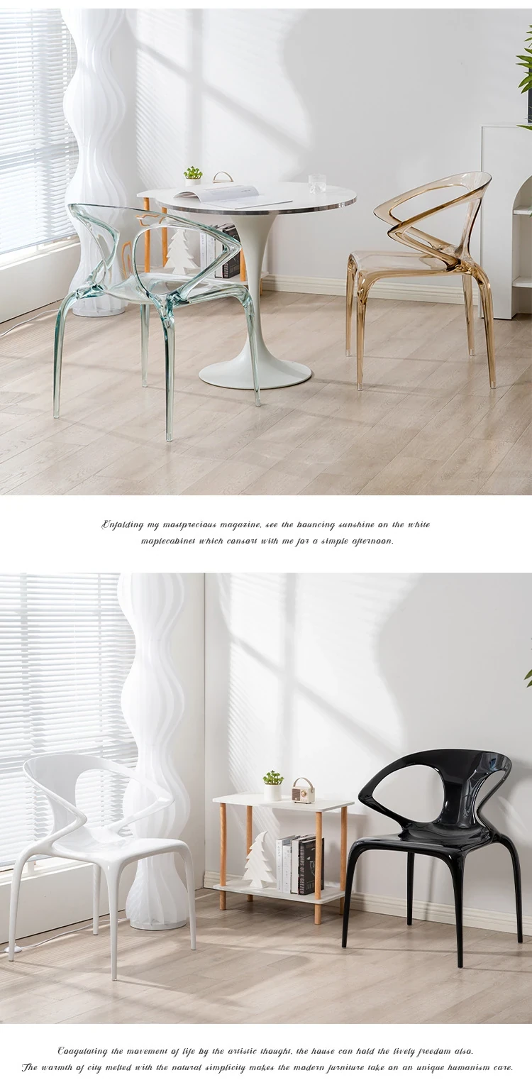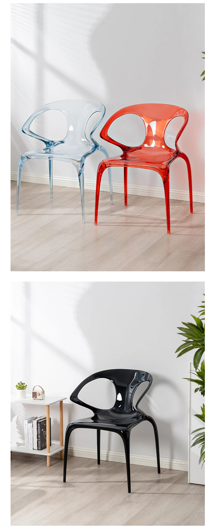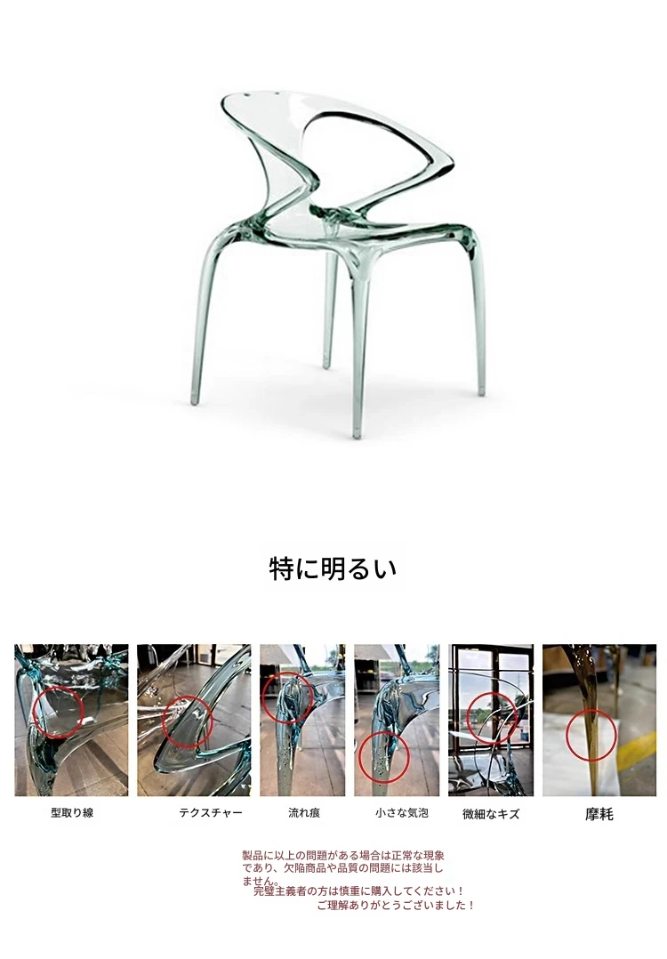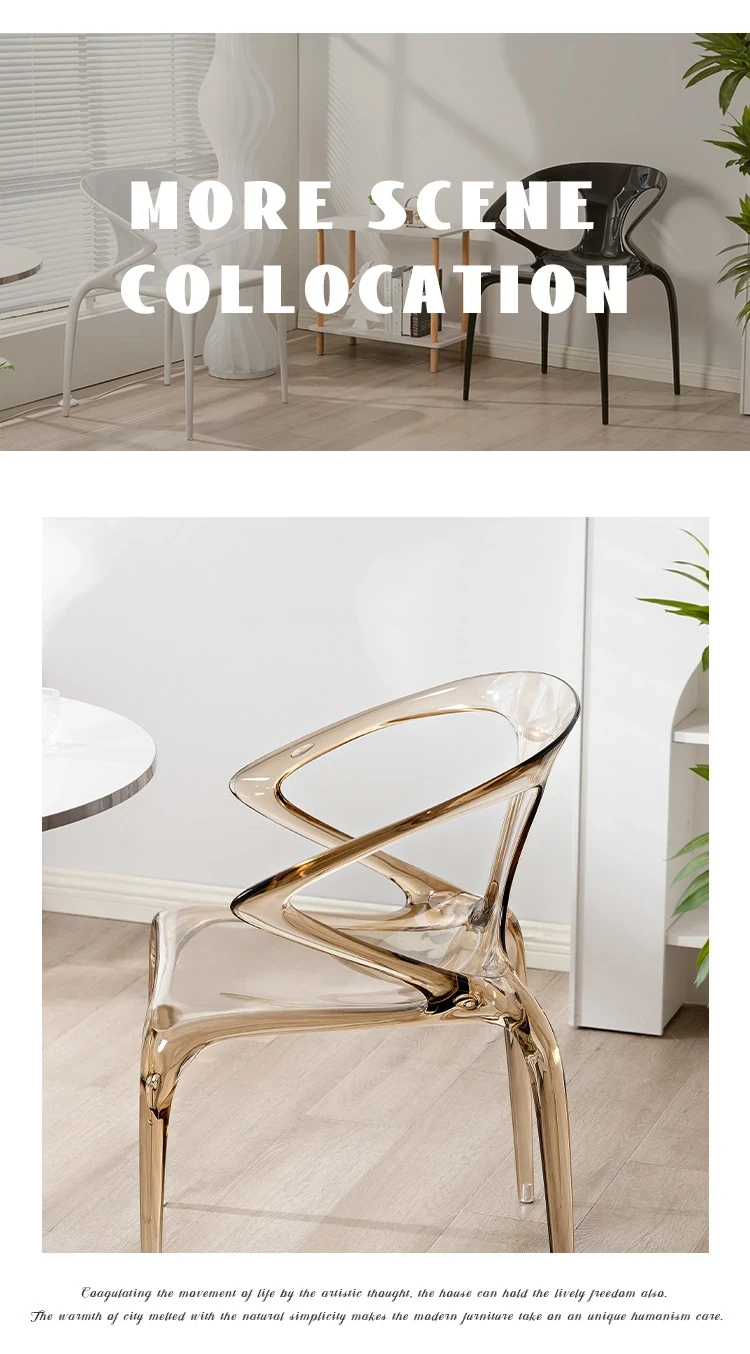 北欧風の透明アクリルダイニングチェア | おしゃれなデザインの家庭用椅子 | アイランドカウンターチェア | ラグジュアリーなリラックスと快適さを実現する背もたれ付き!