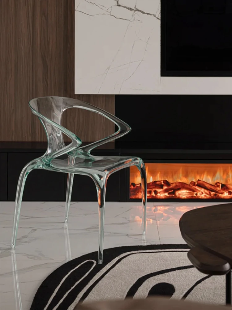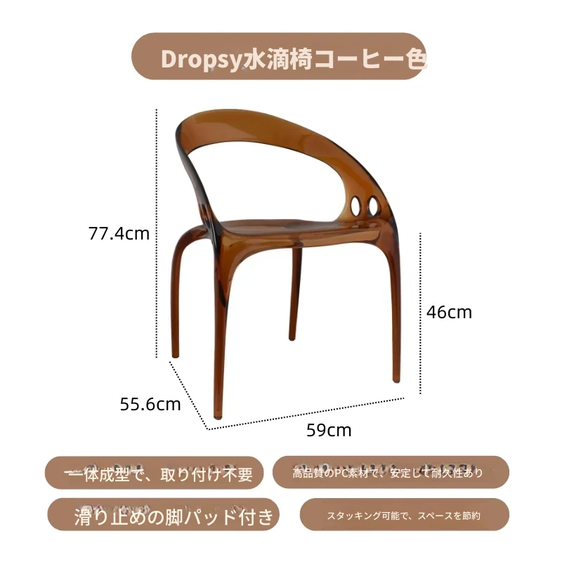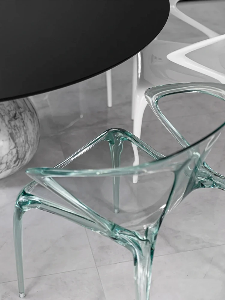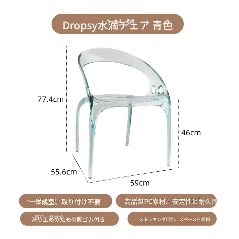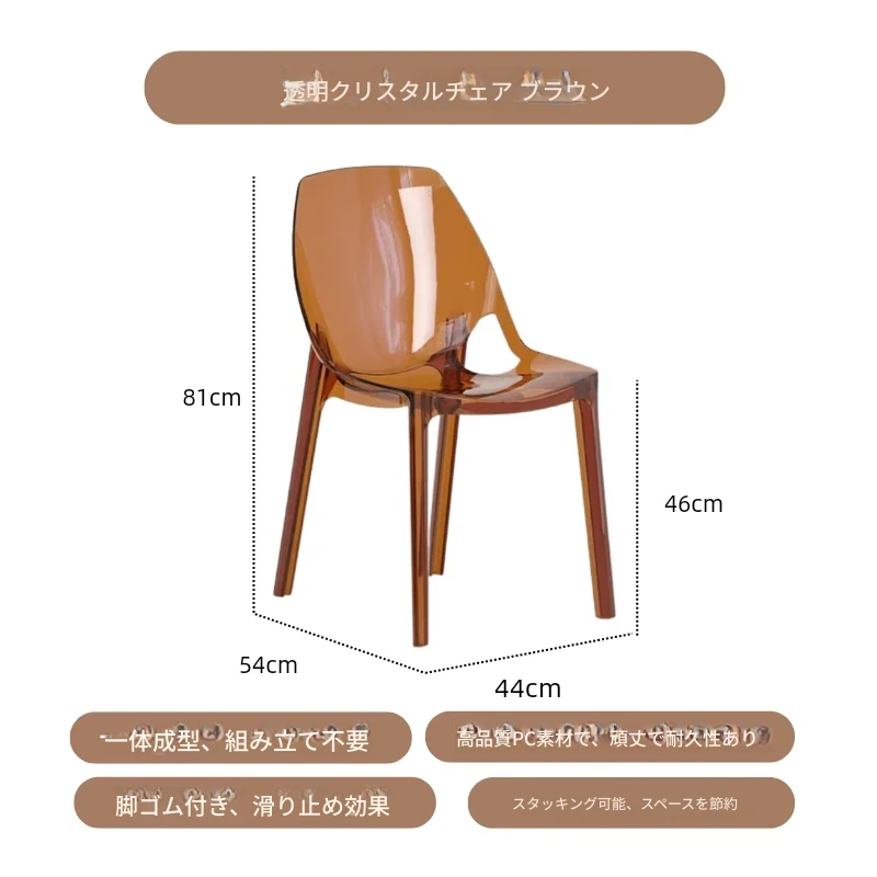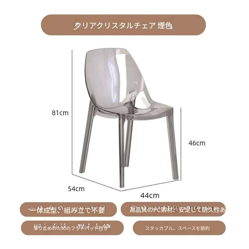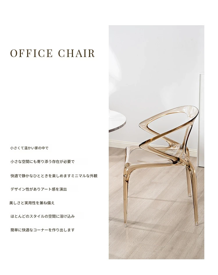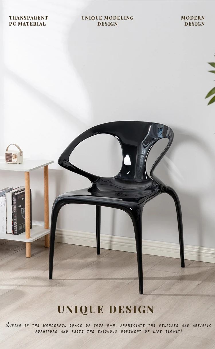 北欧風の透明アクリルダイニングチェア | おしゃれなデザインの家庭用椅子 | アイランドカウンターチェア | ラグジュアリーなリラックスと快適さを実現する背もたれ付き!