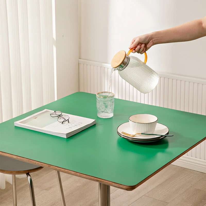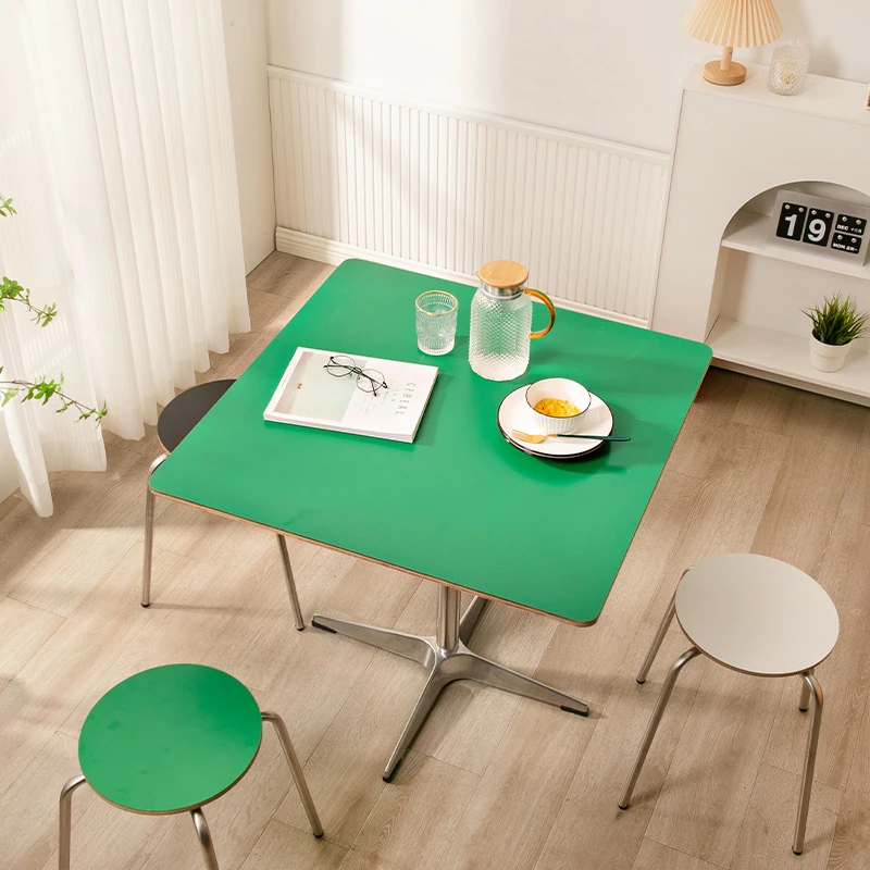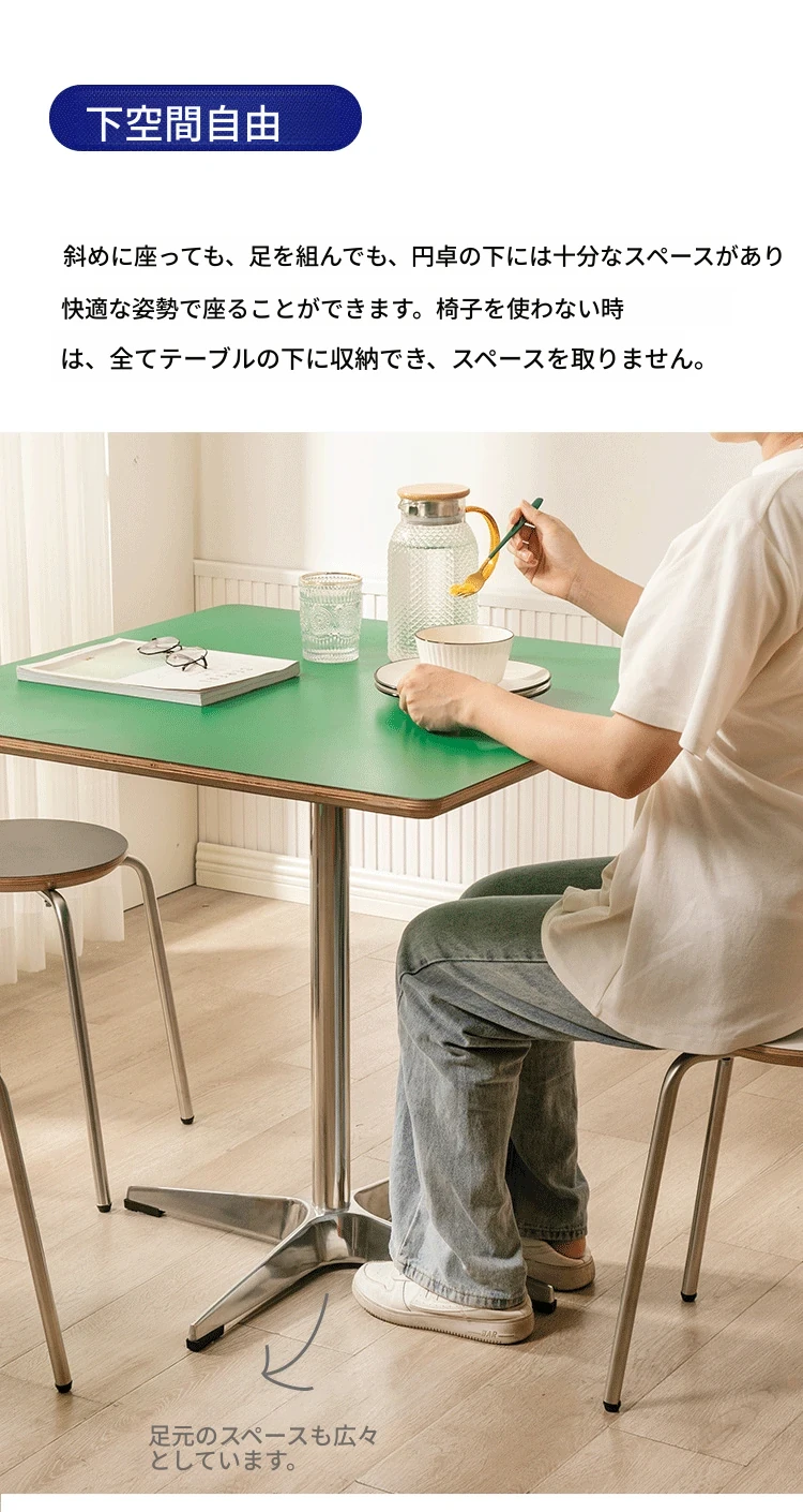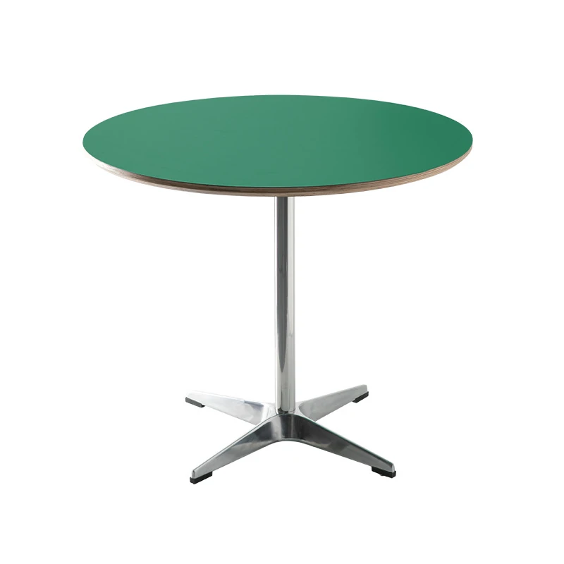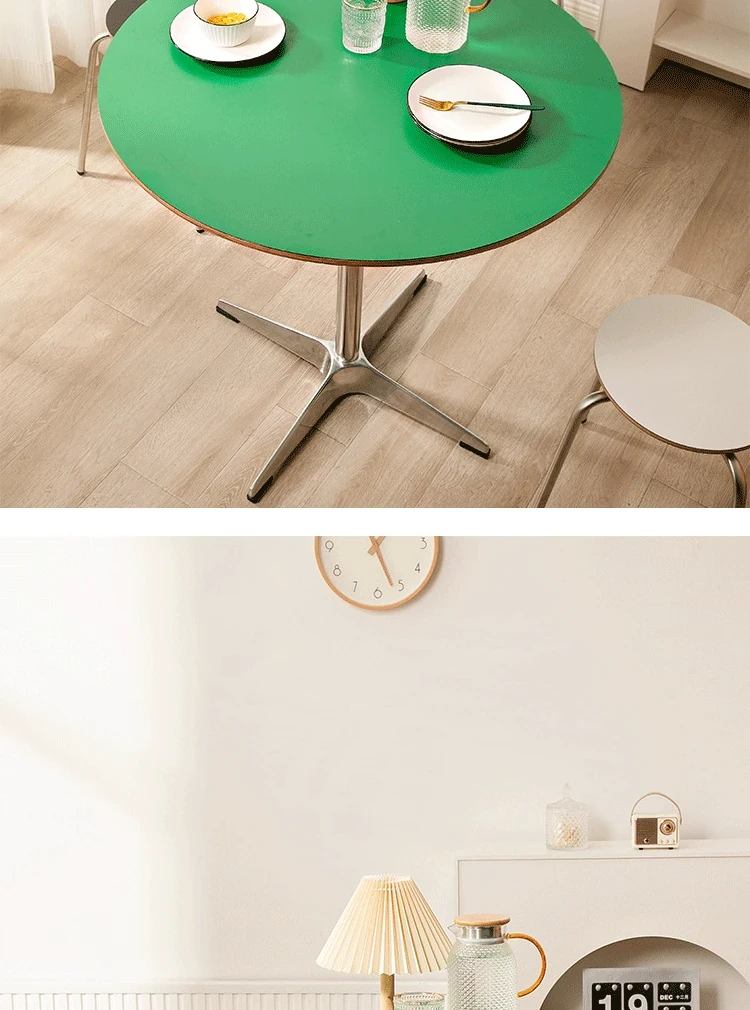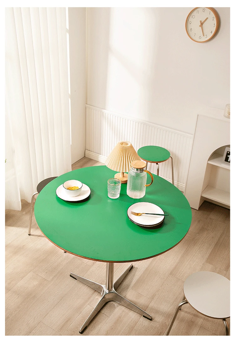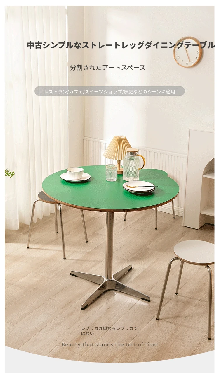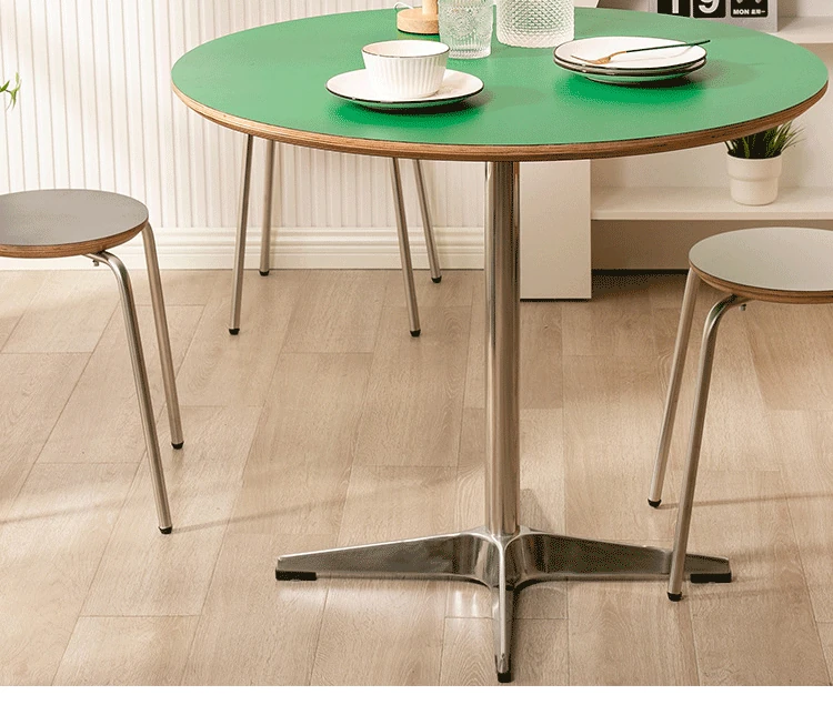 北欧風ヴィンテージデザインの中古グリーンステンレススチールラウンドテーブル - インスタ映えする実木マルチレイヤー会議&商談用テーブル!おしゃれで機能的な空間を演出します。