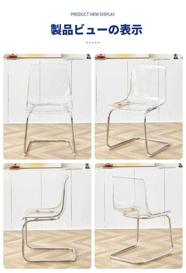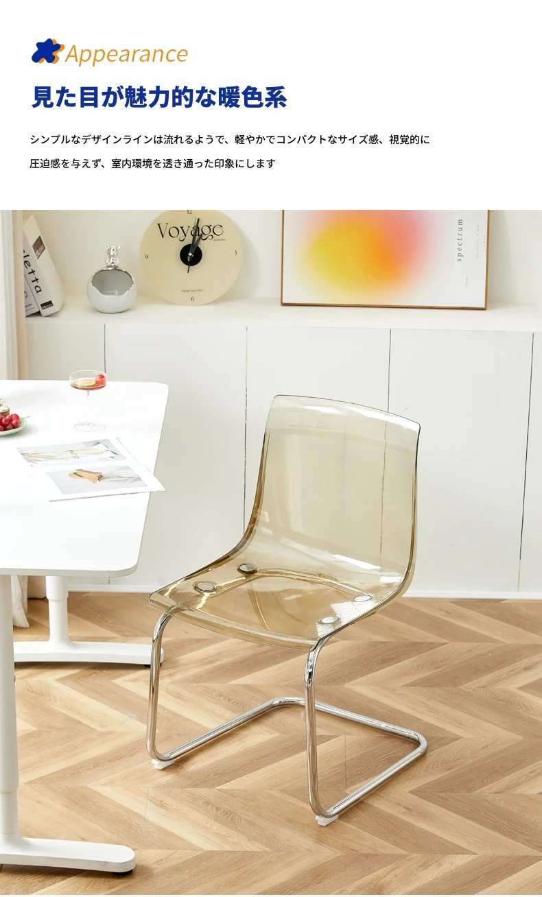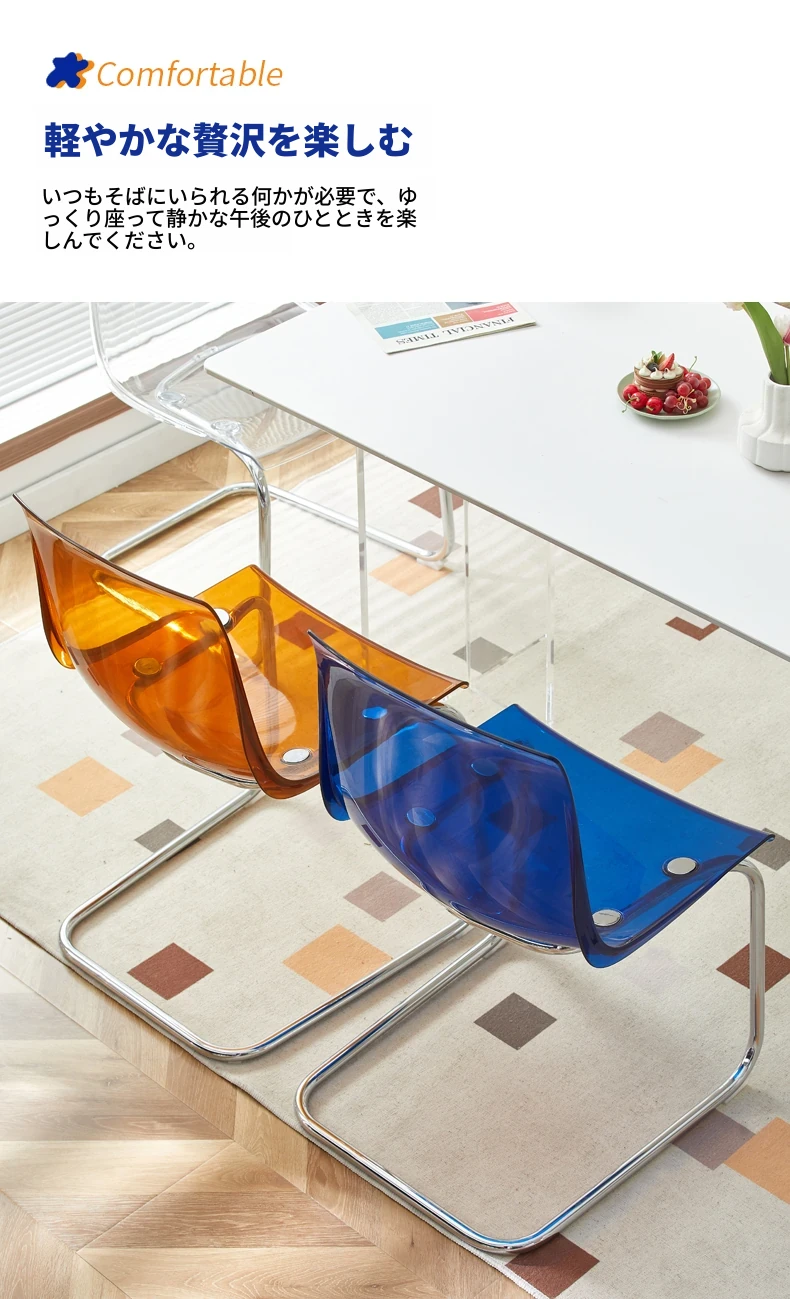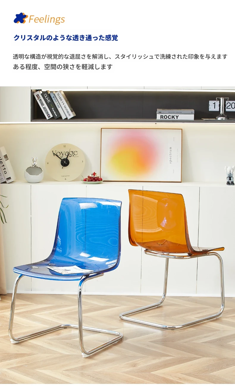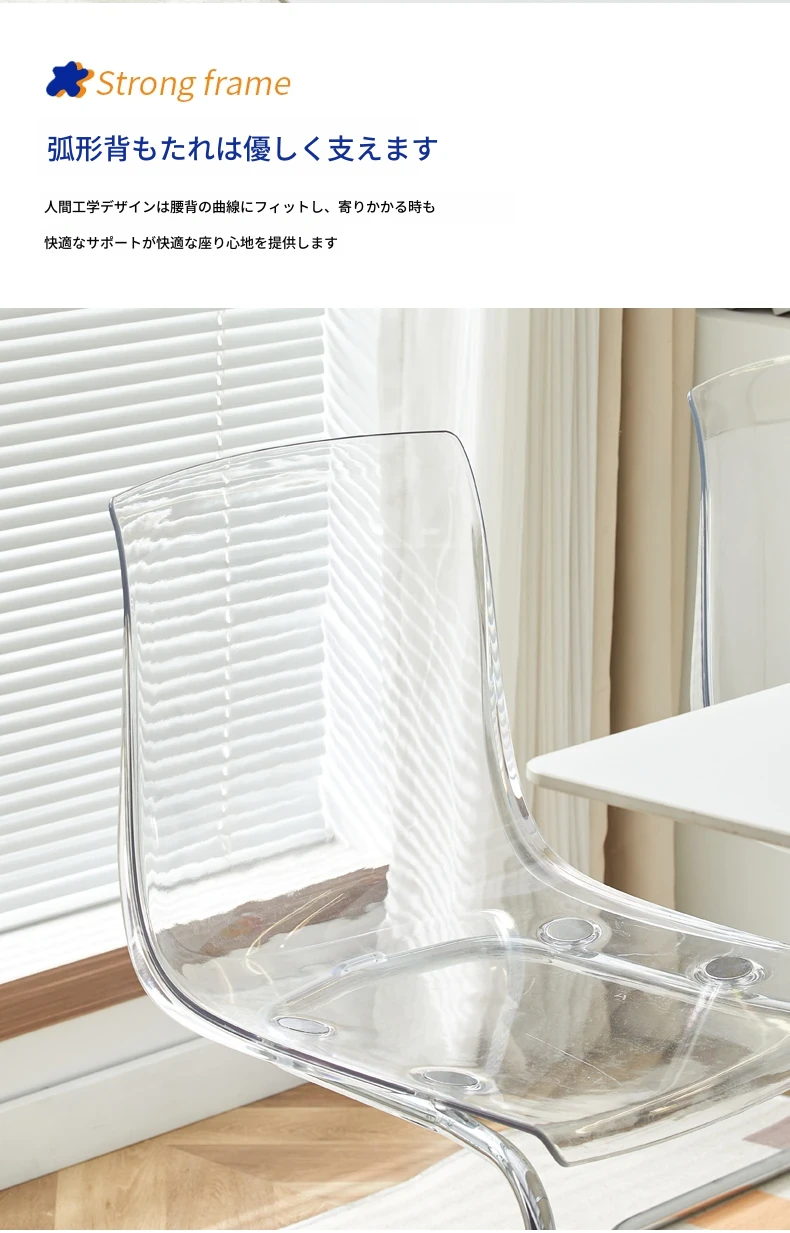 北欧スタイルのアクリル透明ダイニングチェア|シンプルでモダンなデザイン|家庭用書斎やダイニングに最適!快適なプラスチック背もたれ付き|トーヤスのダイニングテーブルチェア