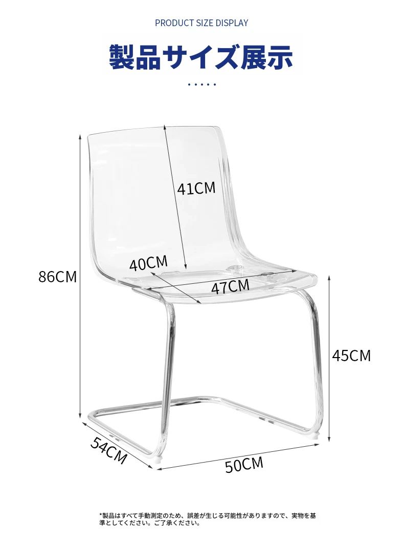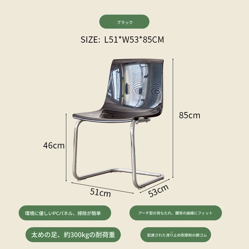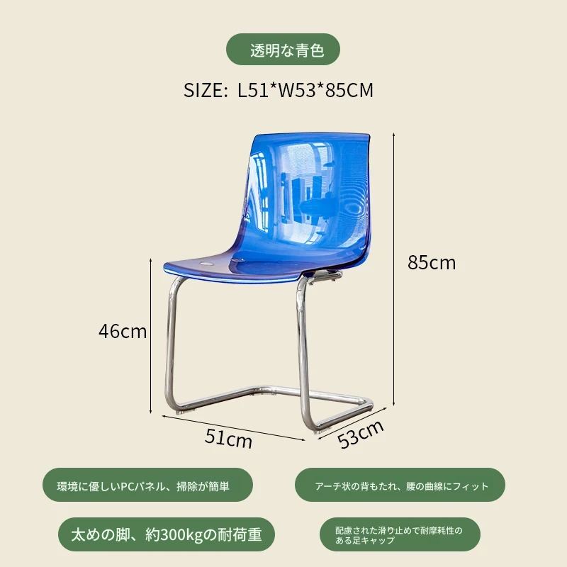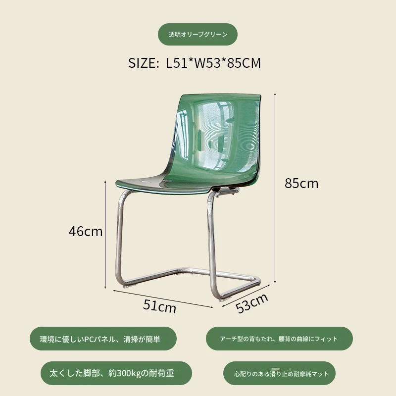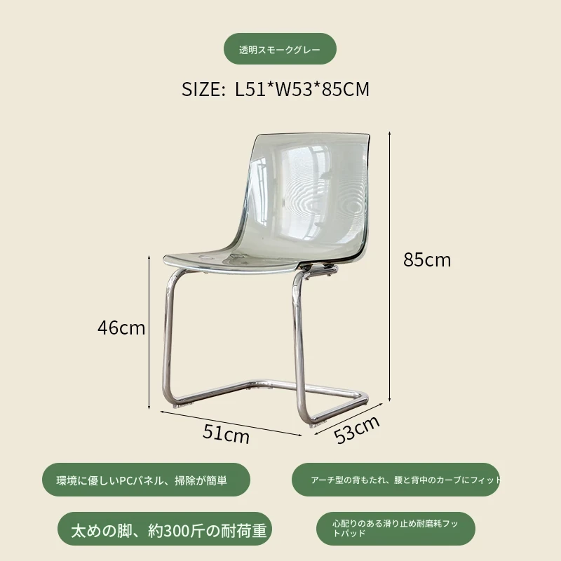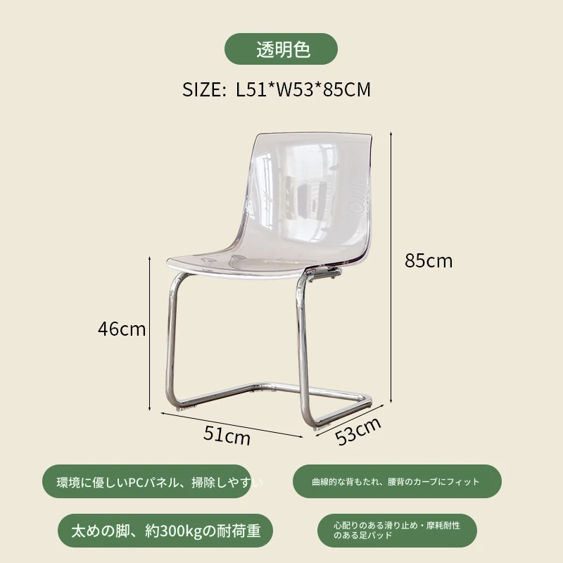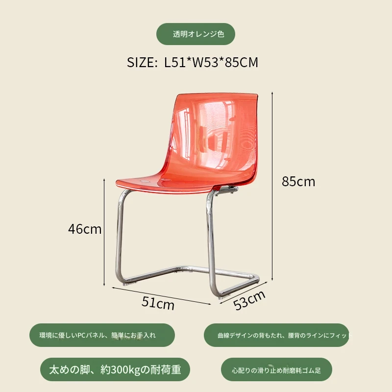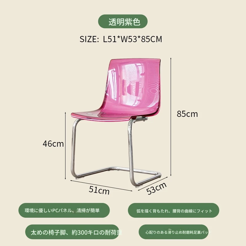 北欧スタイルのアクリル透明ダイニングチェア|シンプルでモダンなデザイン|家庭用書斎やダイニングに最適!快適なプラスチック背もたれ付き|トーヤスのダイニングテーブルチェア