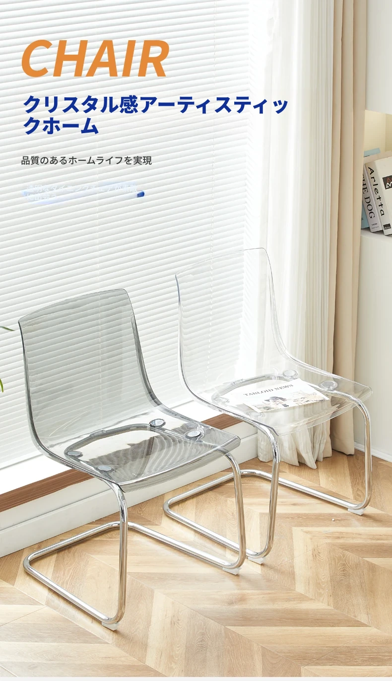 アクリル透明ダイニングチェア|おしゃれなデザイン&快適な座り心地の家庭用透明チェア|リラックスしたひとときを演出するトレンディなスタイルの軽奢椅子