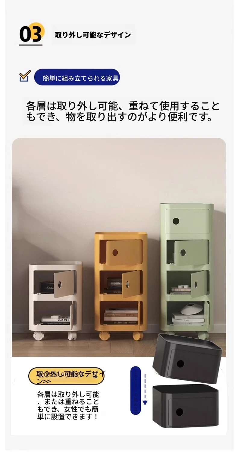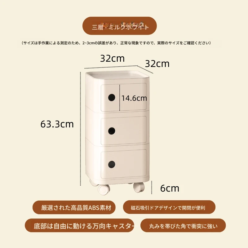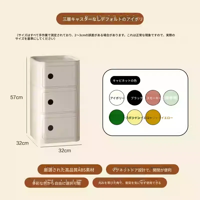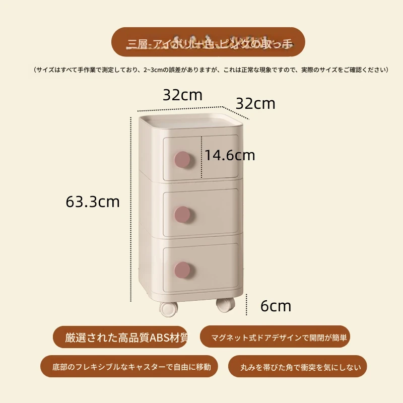 キャスターなし-デフォルトはアイボリー発送【3段】