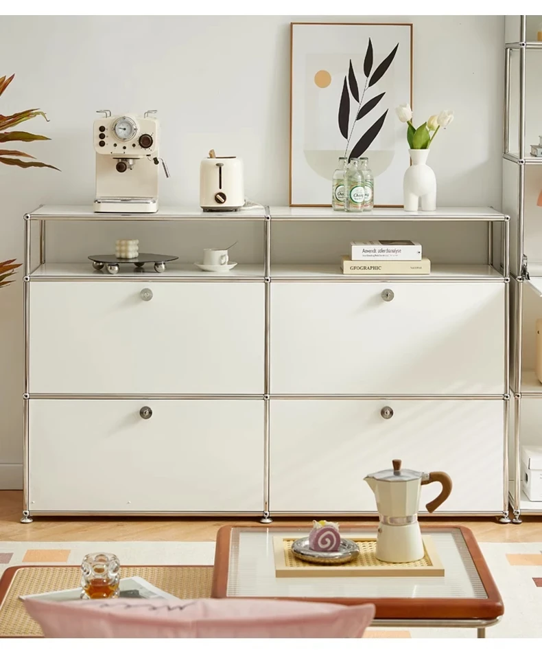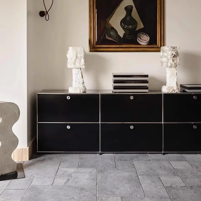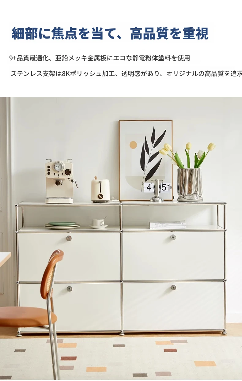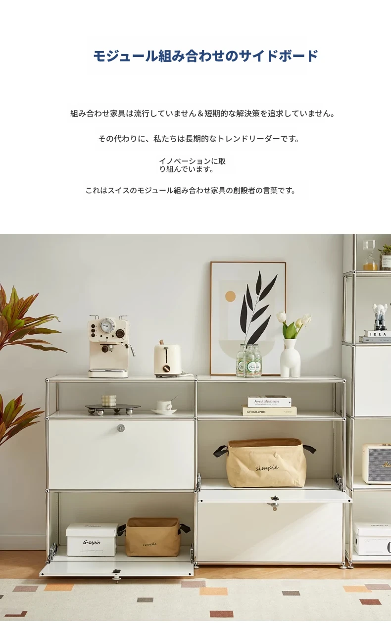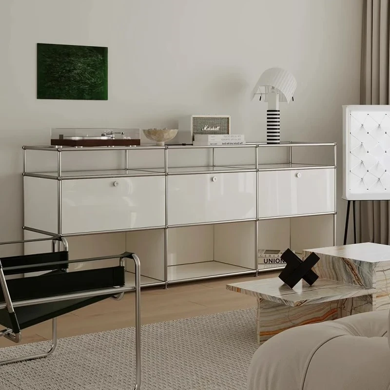 北欧スタイルのUSMキャビネット|モダンな中古モジュラーデザイン|ステンレス製のサイドボード|リビングルームにぴったりのテレビ台&収納キャビネット!収納力抜群でおしゃれな空間を演出します。
