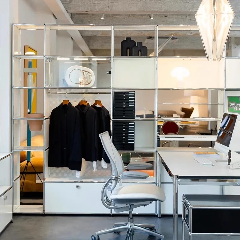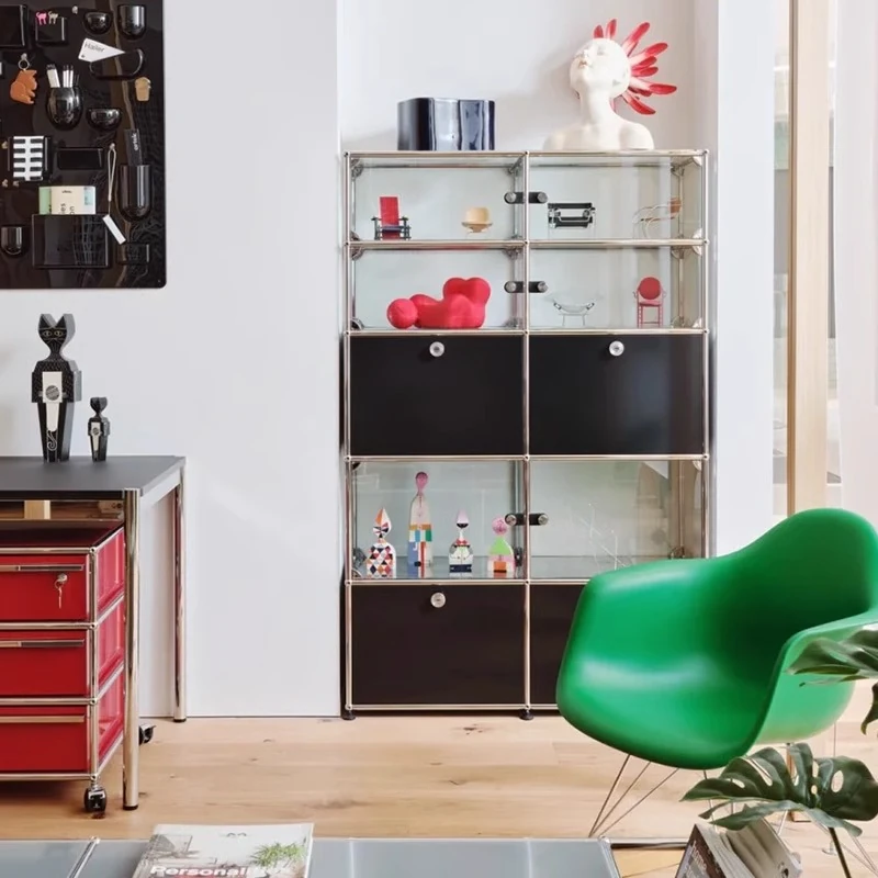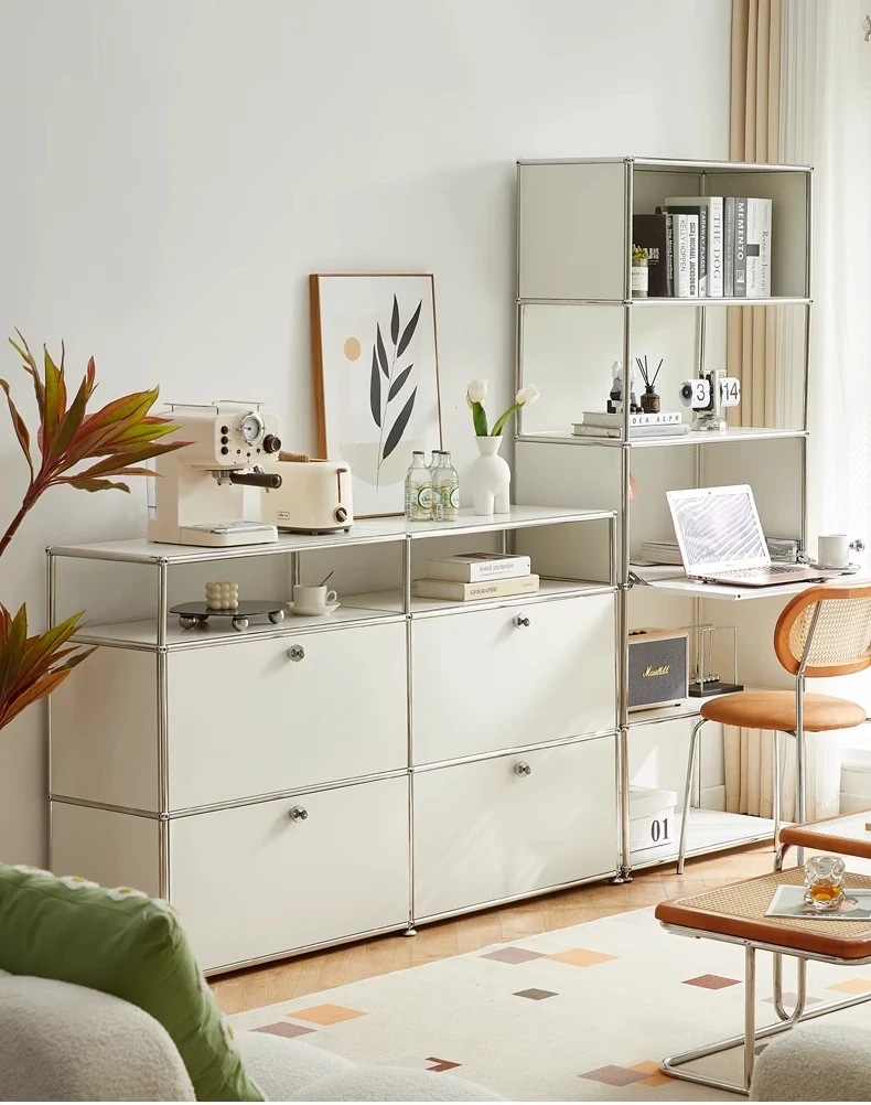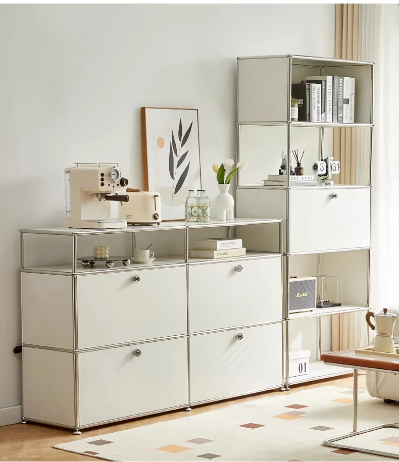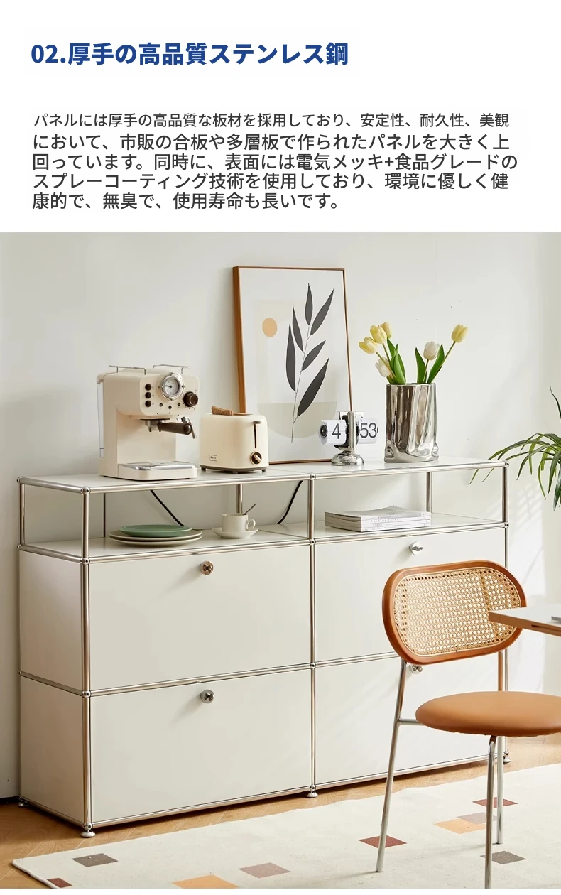北欧スタイルのUSMキャビネット|モダンな中古モジュラーデザイン|ステンレス製のサイドボード|リビングルームにぴったりのテレビ台&収納キャビネット!収納力抜群でおしゃれな空間を演出します。