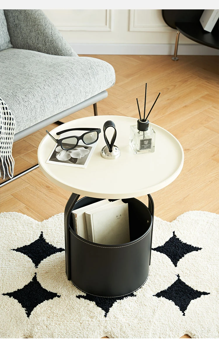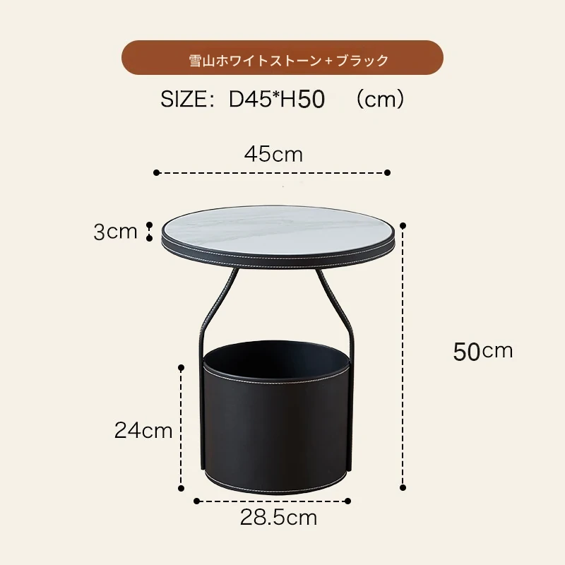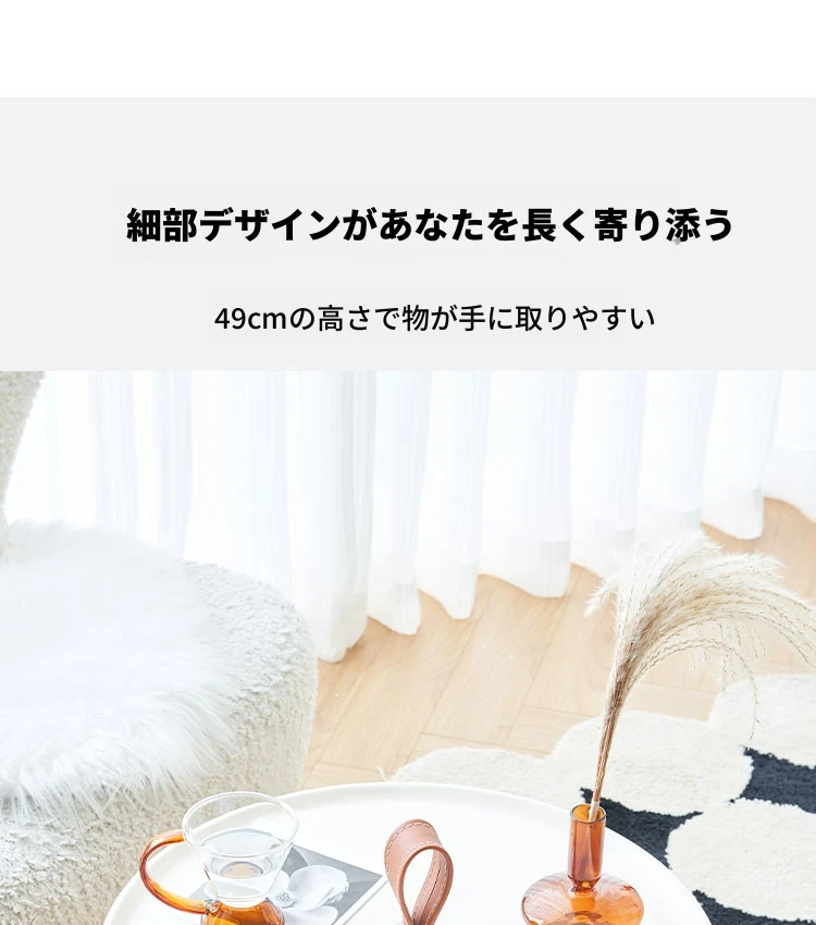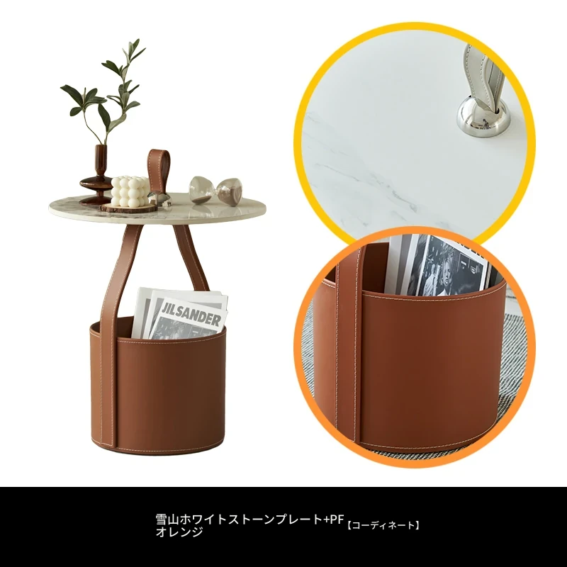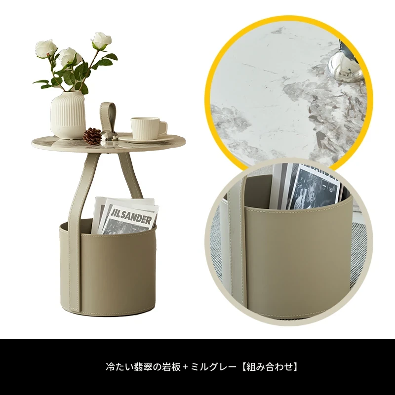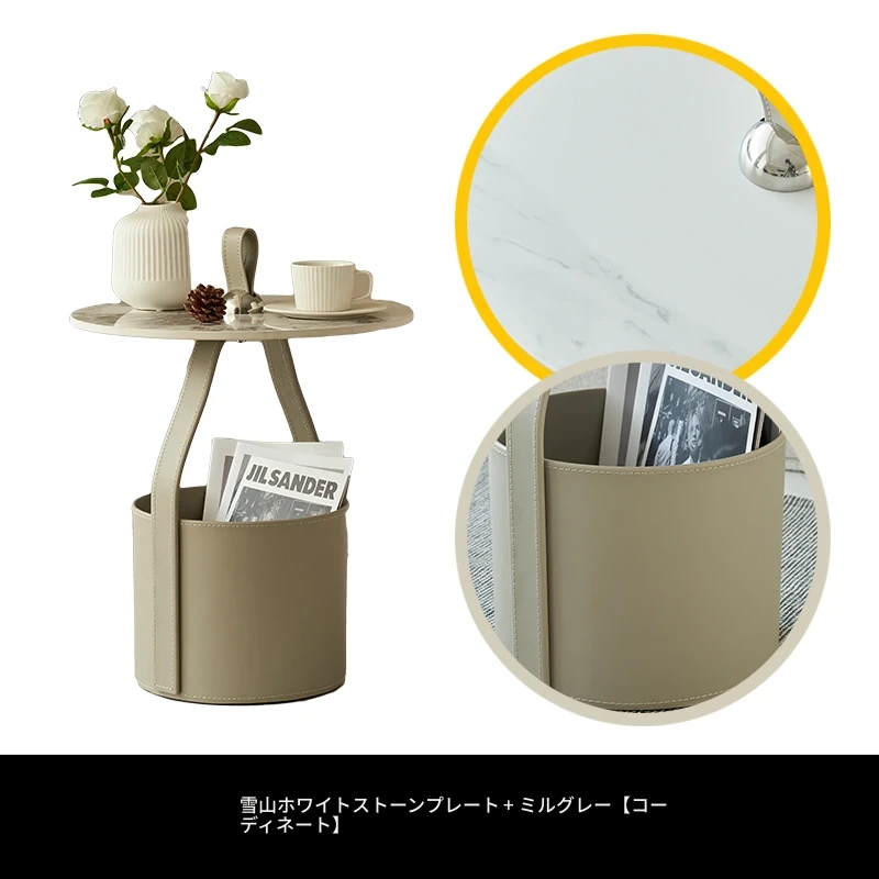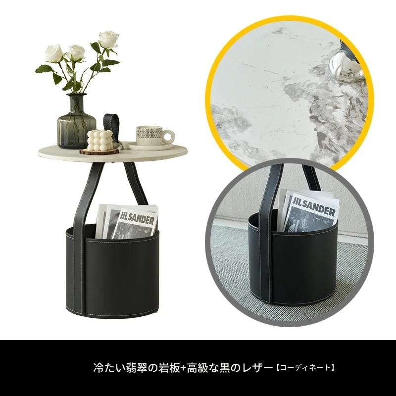 移動可能なデザイン小テーブル!ソファ横やベッドサイドに最適な丸型サイドテーブル。リビング・バルコニーにぴったりな収納角テーブル。使い勝手抜群のスタイリッシュなインテリアを実現!