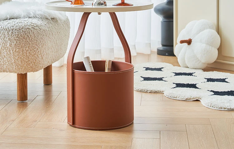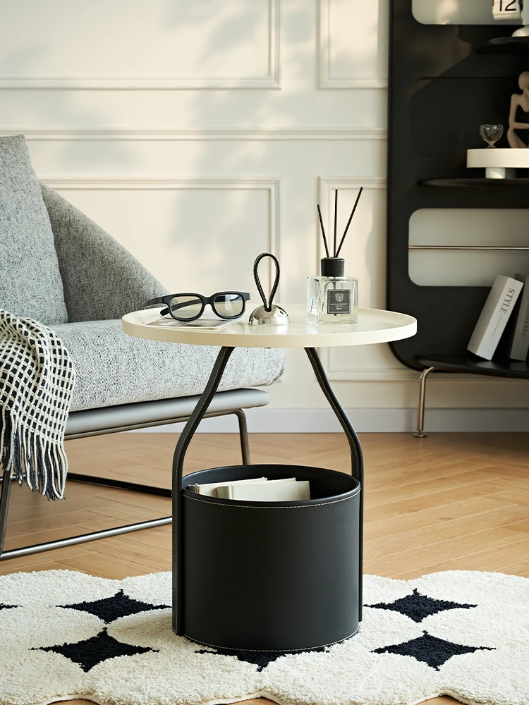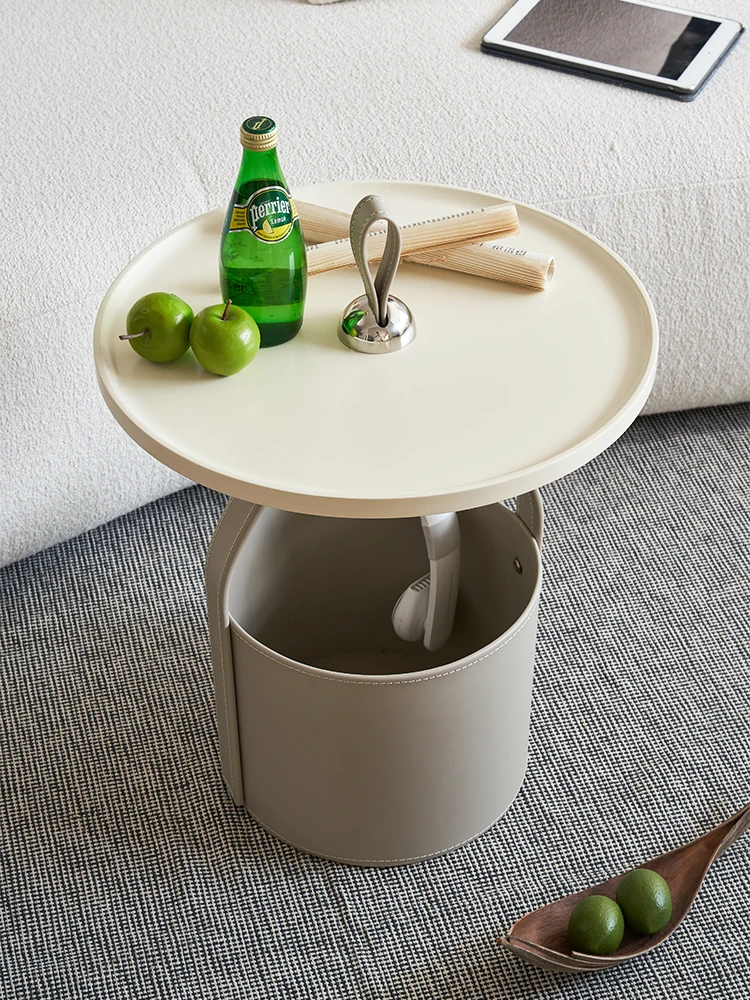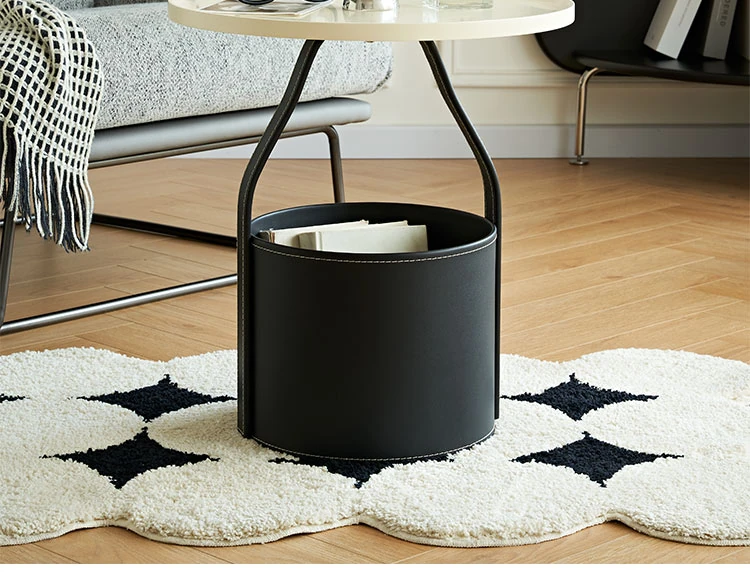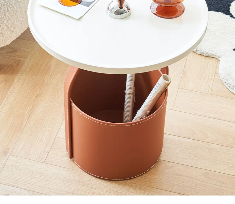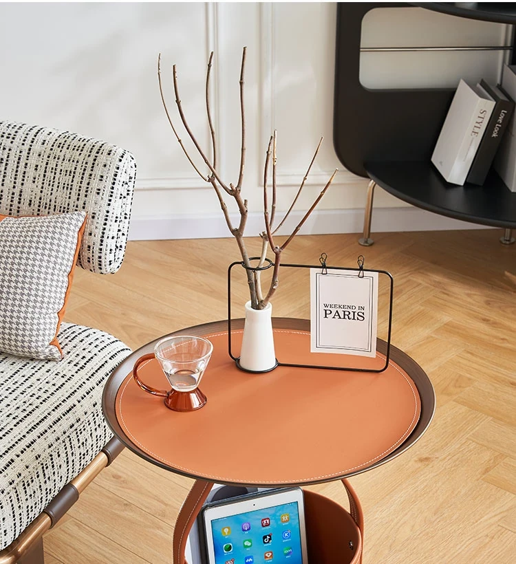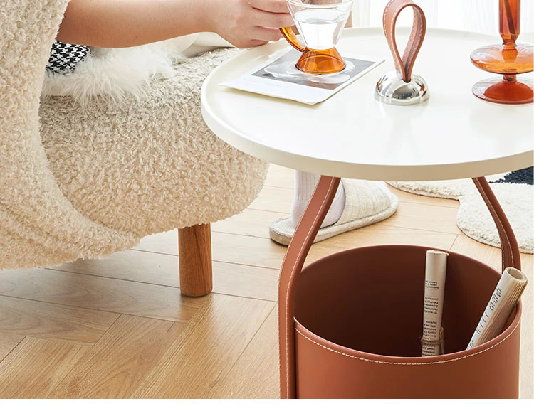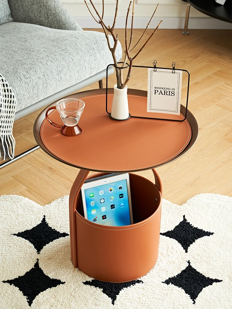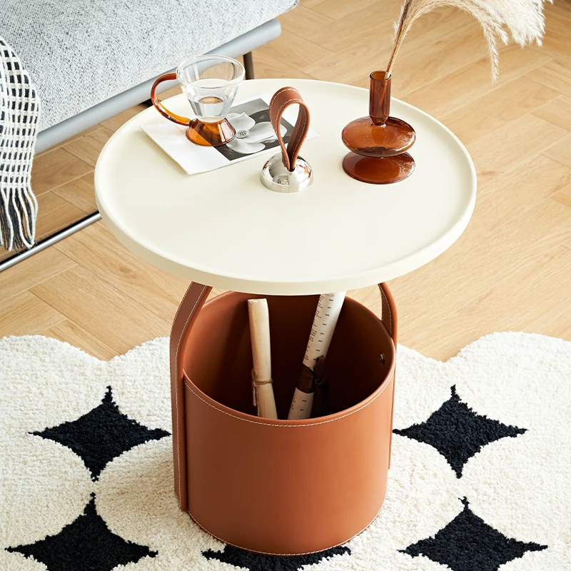 移動可能なデザイン小テーブル!ソファ横やベッドサイドに最適な丸型サイドテーブル。リビング・バルコニーにぴったりな収納角テーブル。使い勝手抜群のスタイリッシュなインテリアを実現!