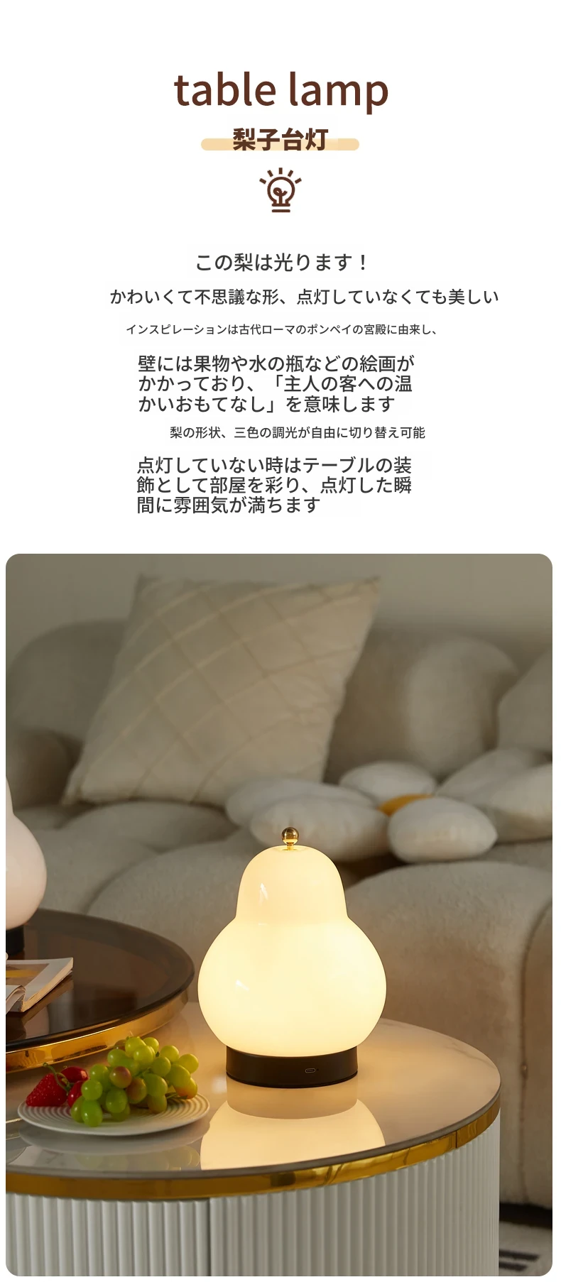 中古フレンチクリームペアランプ - 寝室、書斎、リビングに最適!充電式タッチセンサー付きで、持ち運びも便利。心地よい雰囲気を演出する小型ナイトライト。おしゃれで実用的なインテリアアイテムです!