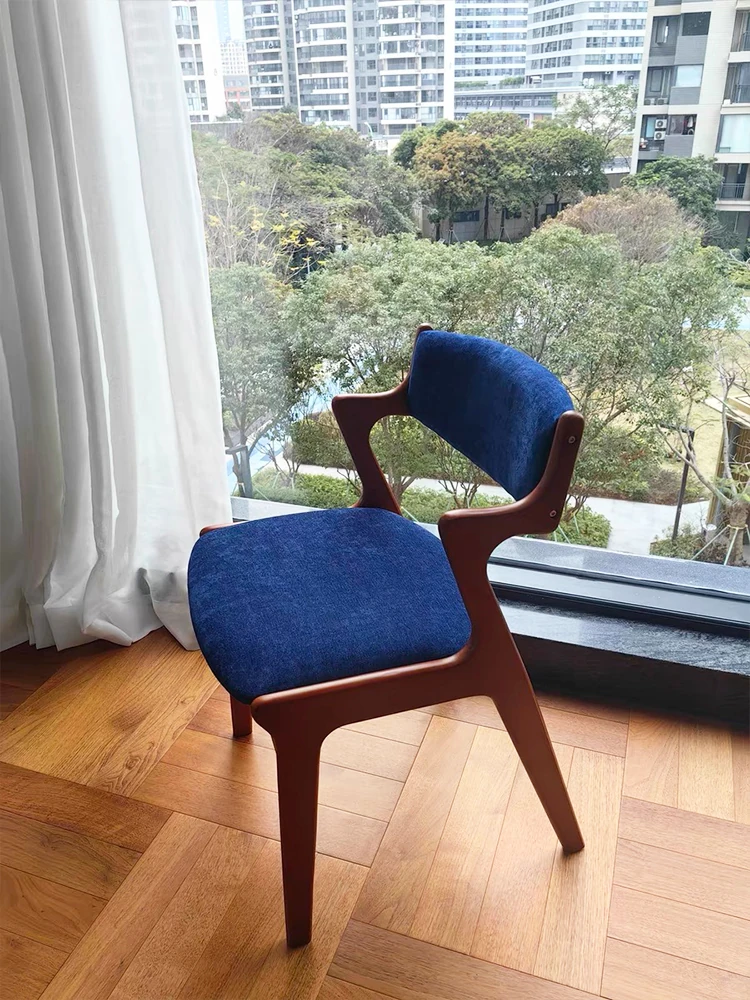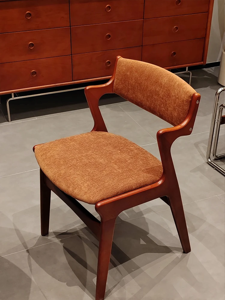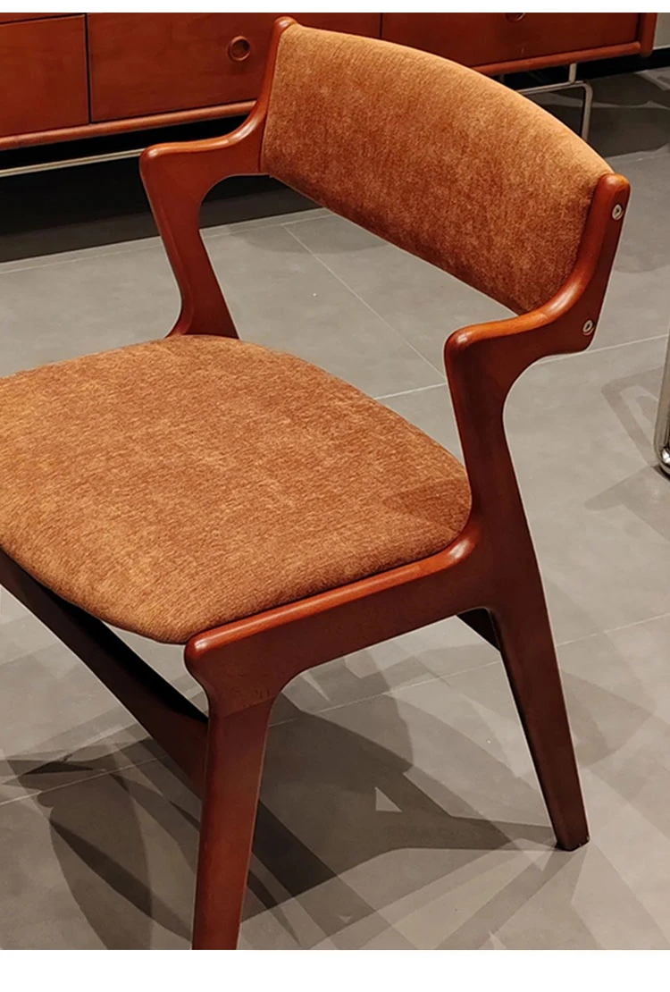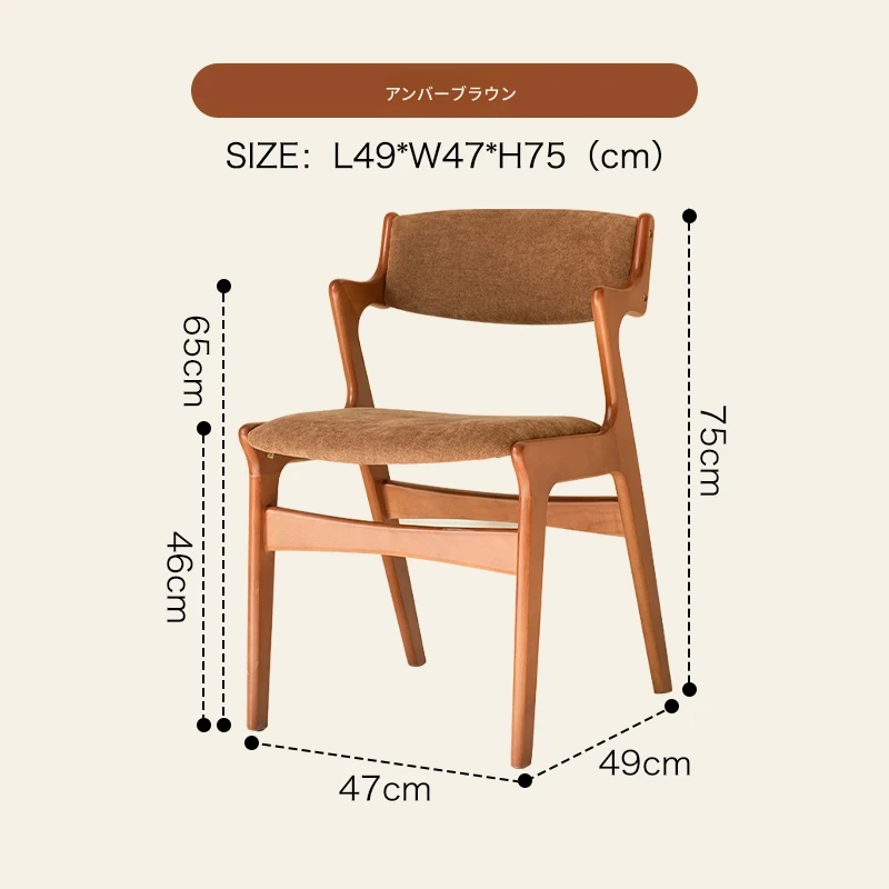 北欧風レトロデザインの無垢材ダイニングチェア - コンパクトな家庭向け、リラックスできる背もたれ付きのデザイナー椅子。食事や書斎に最適なスタイルを!
