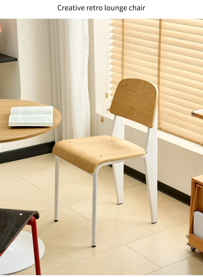 Vintage Scandinavian Wooden Dining Chair - Designer Home Retro Cream Backrest Stool, Perfect for Your Dining Table, Stylish and Comfortable Standard Chair
