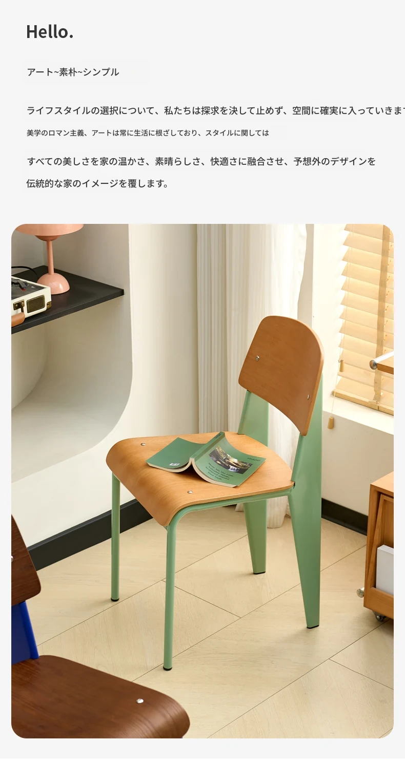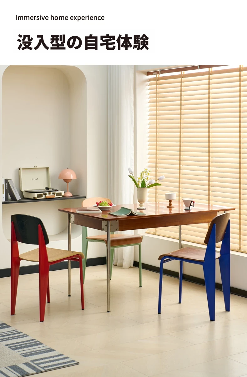 北欧風デザインの中古実木ダイニングチェア|レトロなクリームカラー|快適な背もたれ付き|スタイリッシュな家用椅子でおしゃれな食卓を演出!