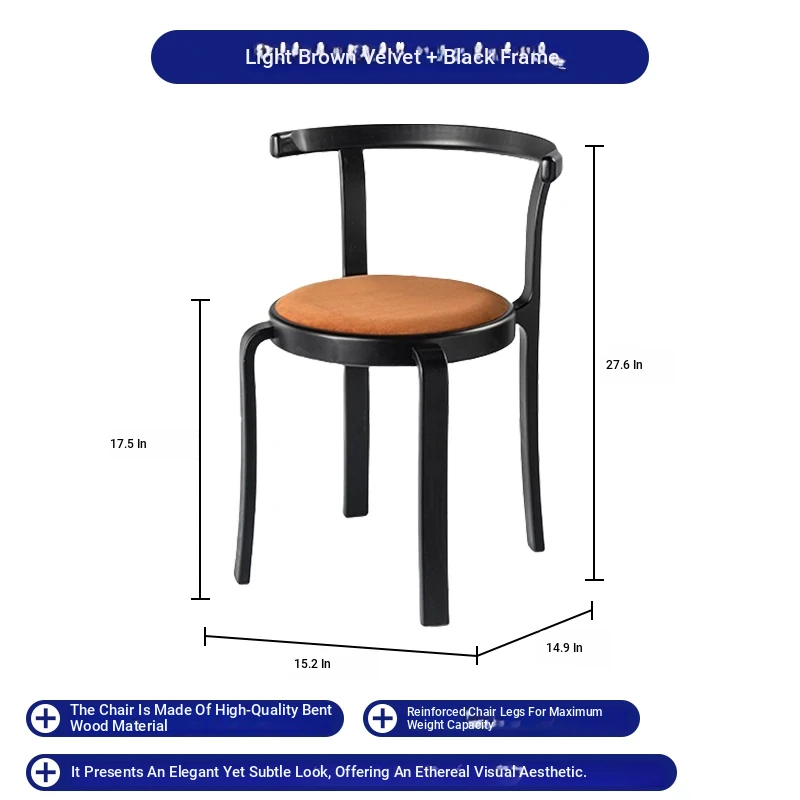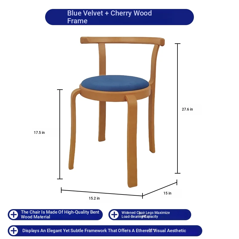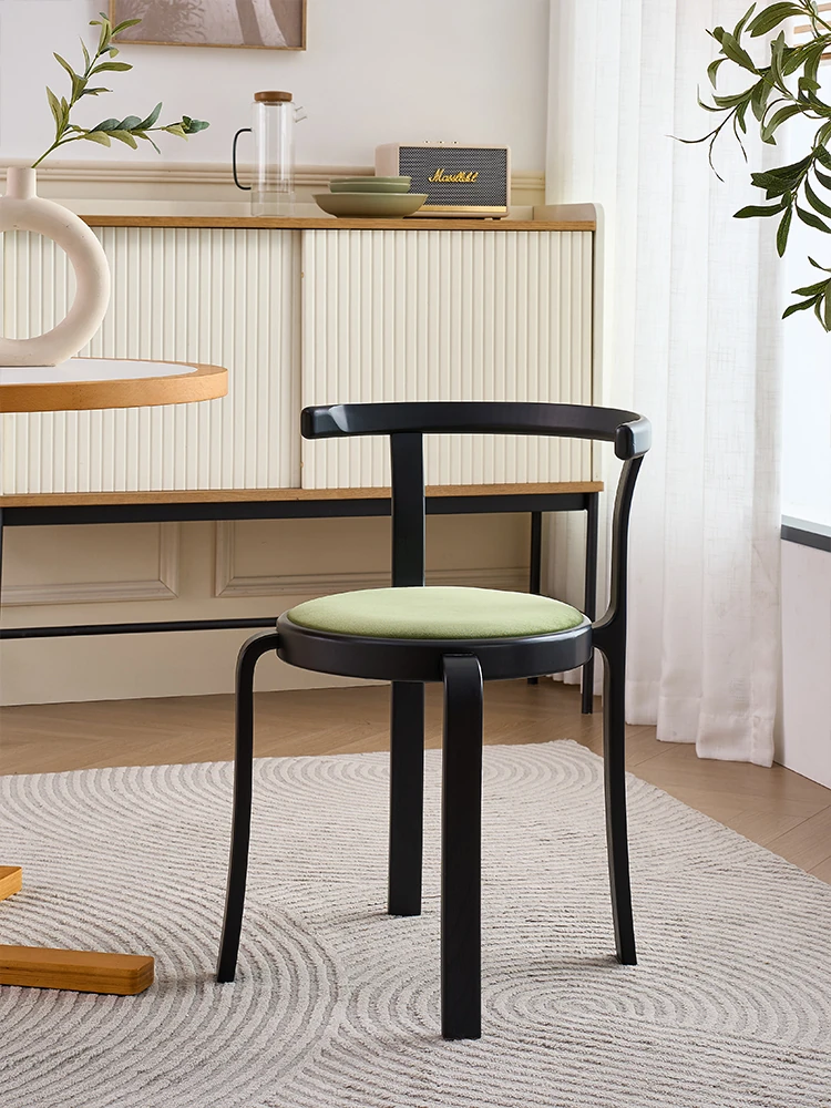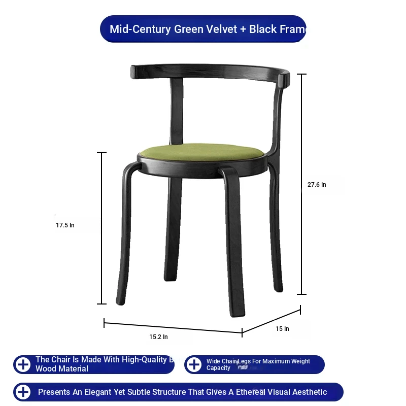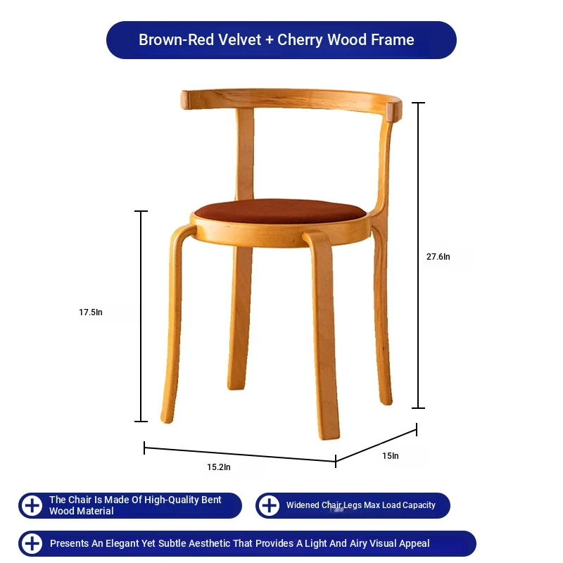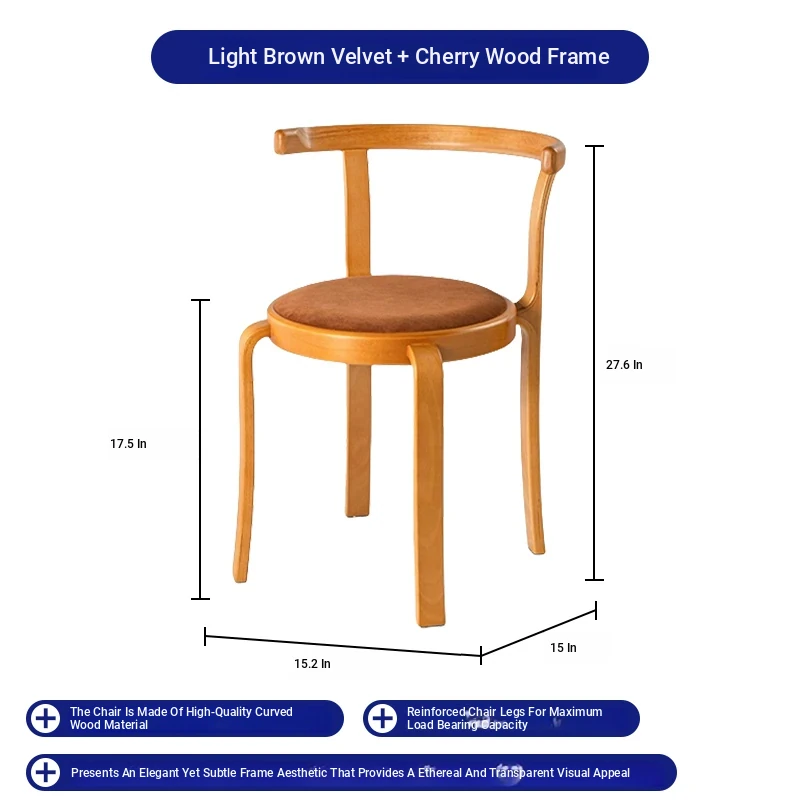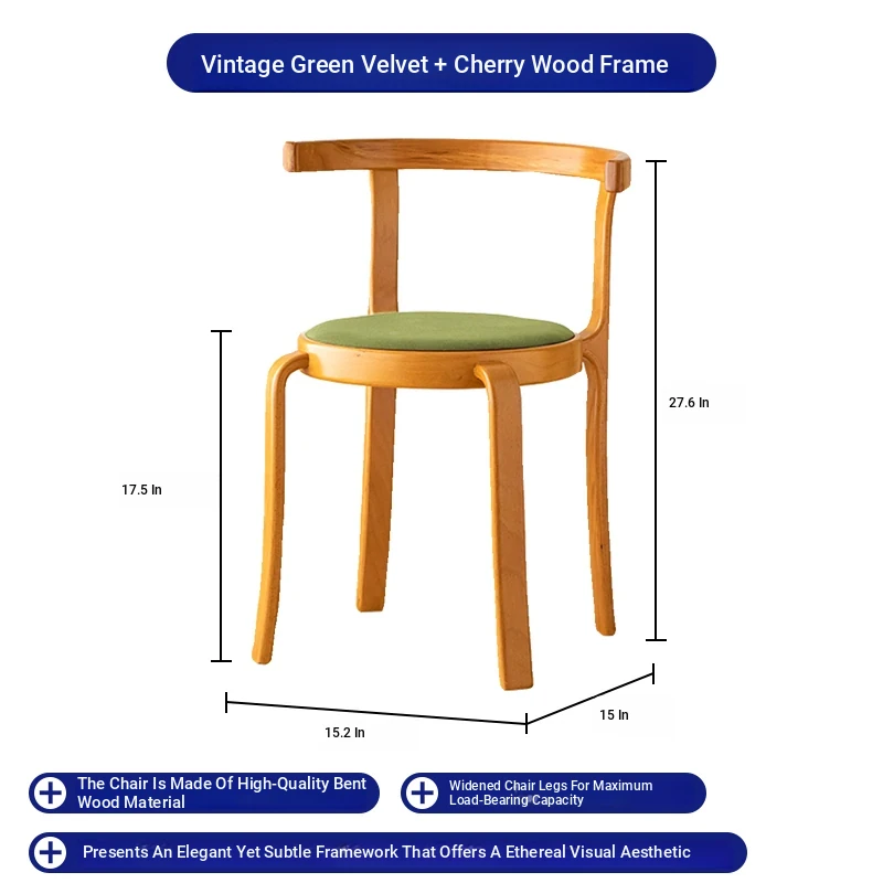 Vintage Solid Wood Dining Chair - Designer Small Space Stackable Chairs for Home, Perfect for Cafes, Trendy Upholstered Dining Seat