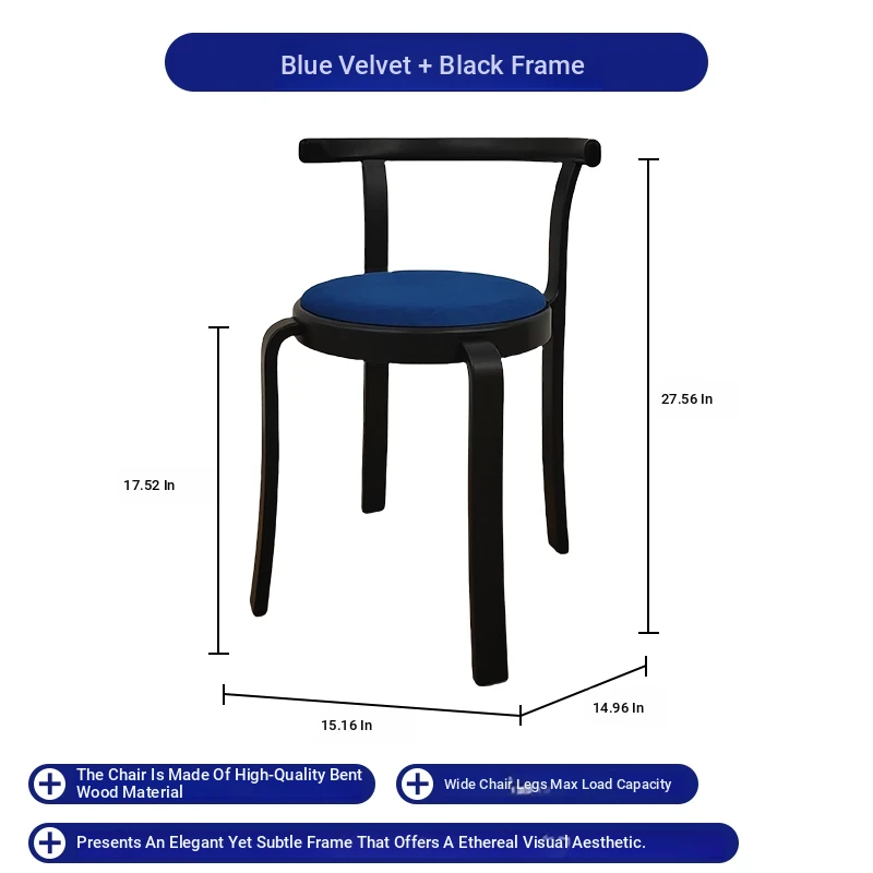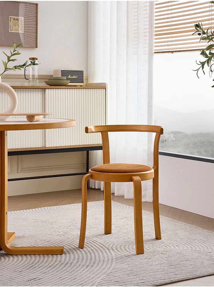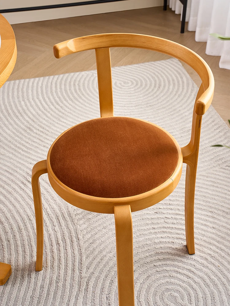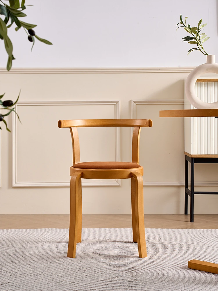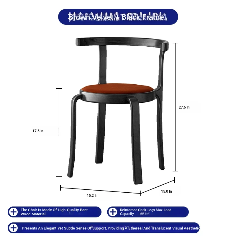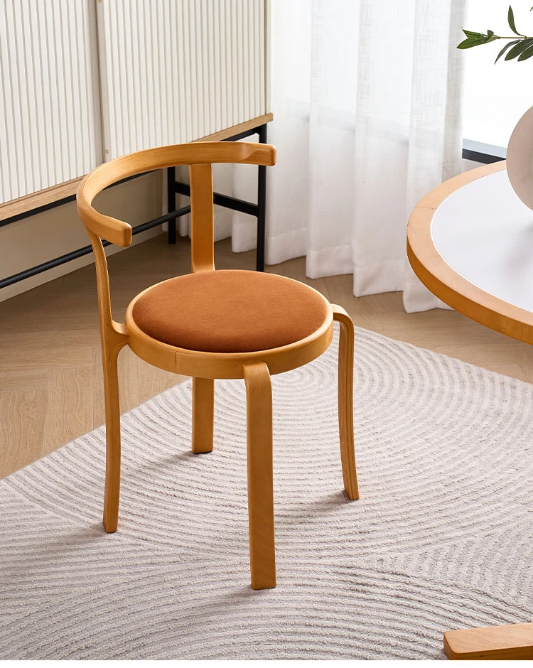Vintage Solid Wood Dining Chair - Designer Small Space Stackable Chairs for Home, Perfect for Cafes, Trendy Upholstered Dining Seat