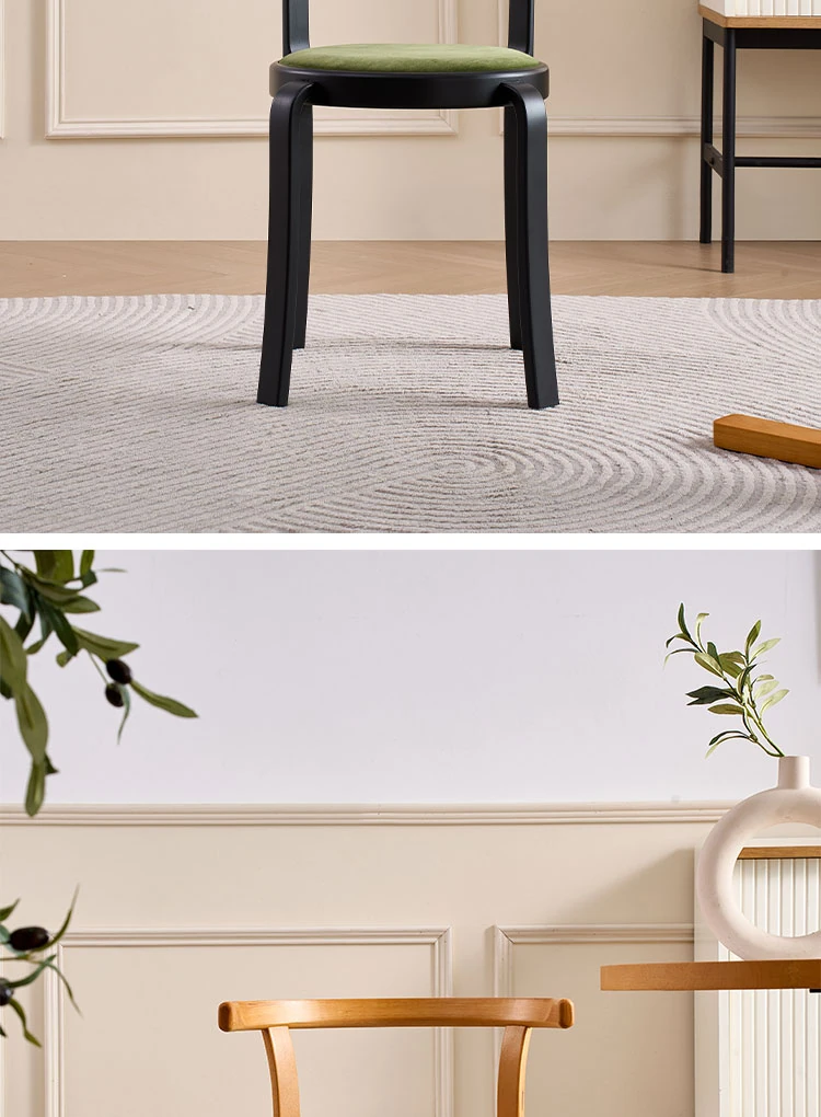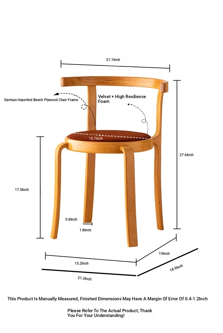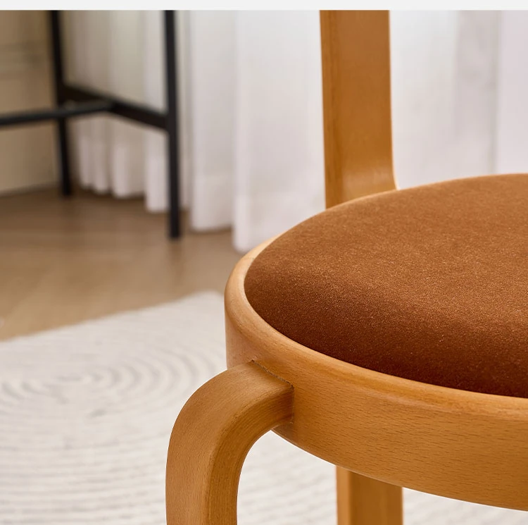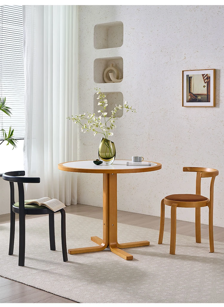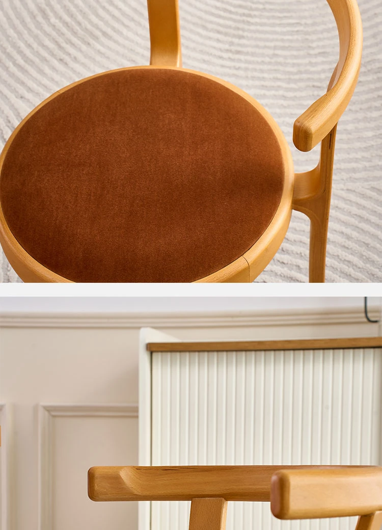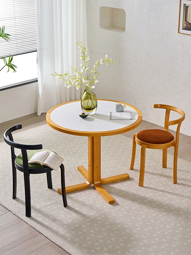 Vintage Solid Wood Dining Chair - Designer Small Space Stackable Chairs for Home, Perfect for Cafes, Trendy Upholstered Dining Seat