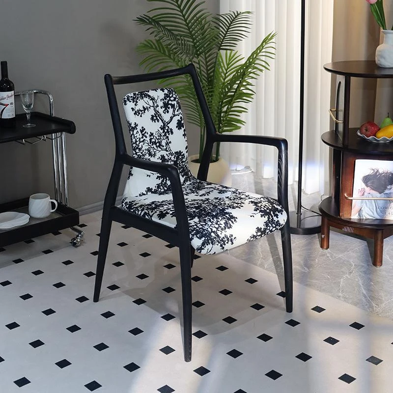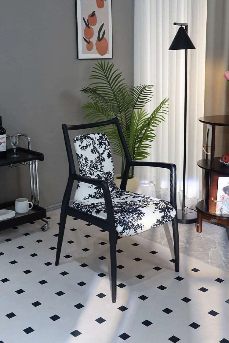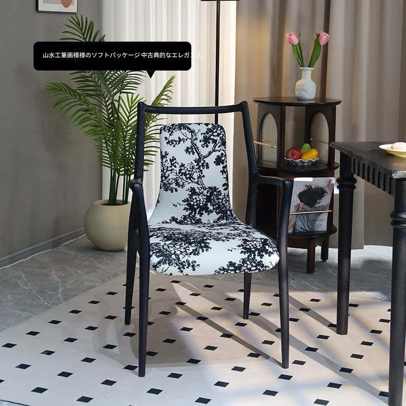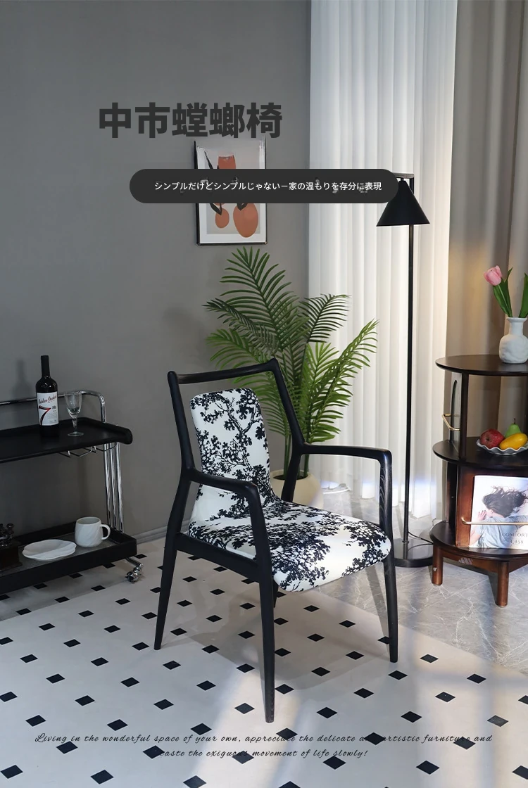 フランス風中華モダンレトロデザイン!高品質天然木製フクルチェア - おしゃれなリビングやダイニングに最適!書斎やゲスト用にもぴったり。居心地の良い背もたれ付きダイニングチェア。