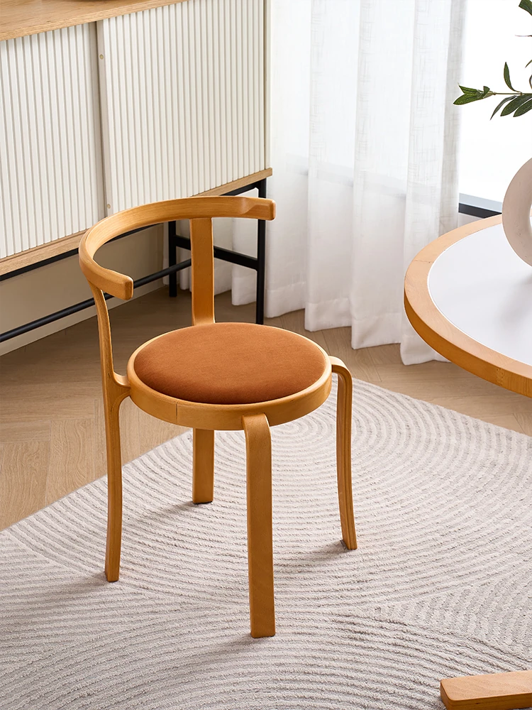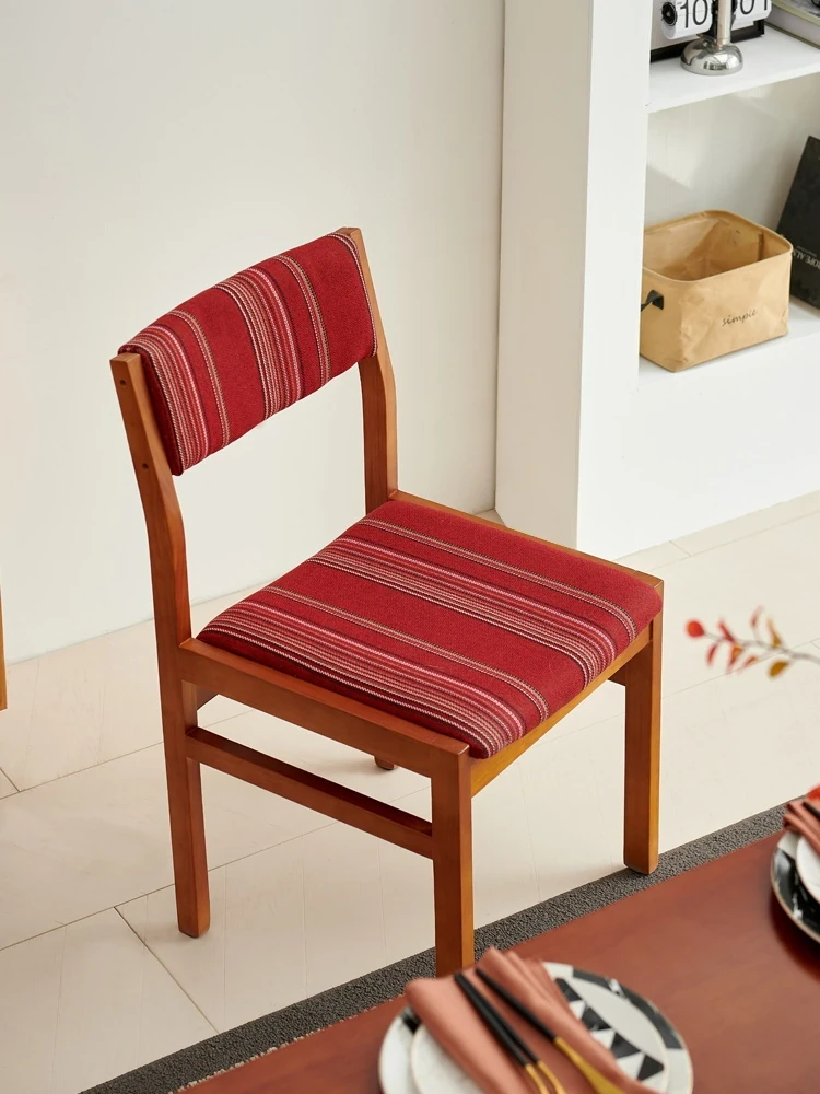 中古デザインの木製スタッキングダイニングチェア、柔らかなクッション付き!シンプルでレトロなスタイル、小型住宅に最適なリクライニングチェア。おしゃれなインテリアにぴったりの一品です!