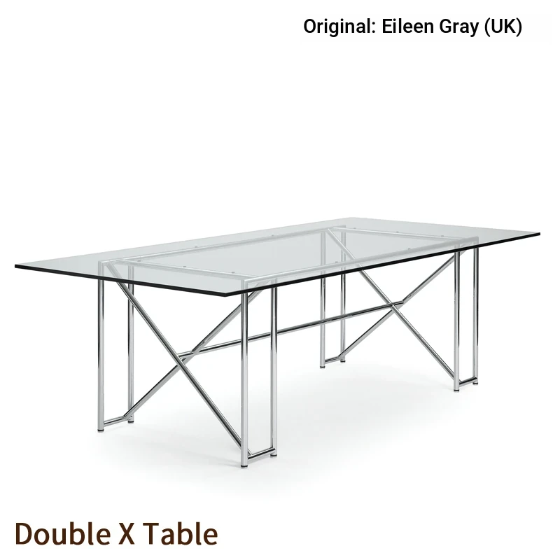Nordic Minimalist Double X Table - Vintage-Inspired Stainless Steel and Glass Long Dining Table for Stylish Dining Experience